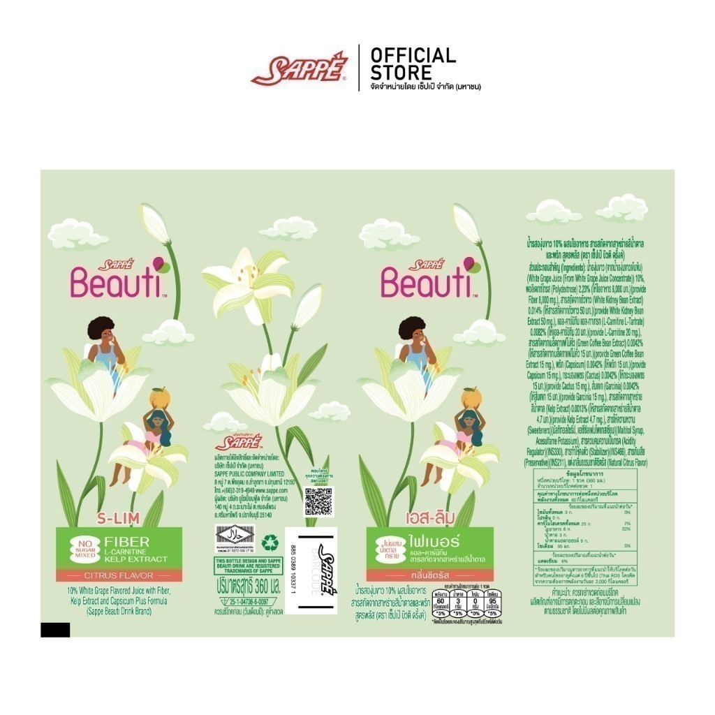 เซ็ปเป้ บิวติดริ้งค์ สูตร เอส สลิม Sappe Beauti Drink - S Slim จำนวน 12 ขวด น้ำรสองุ่น ขำว 10% ผสมใยอำหำร