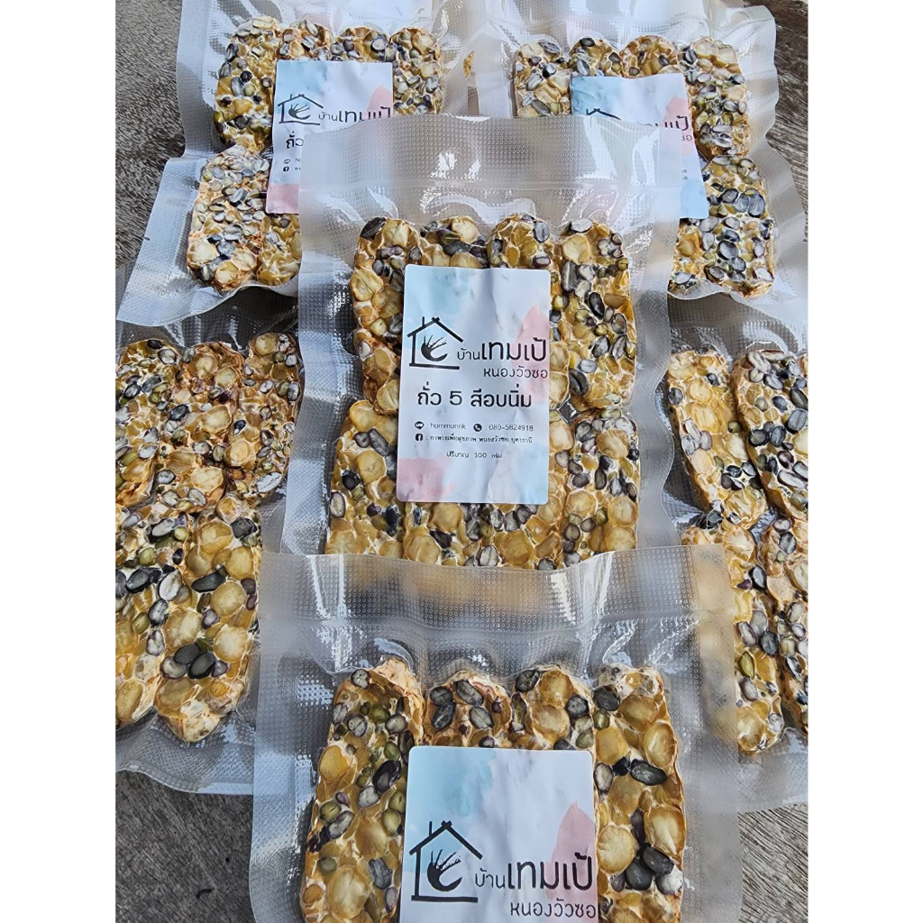 เทมเป้ถั่ว 5 สี อบนิ่ม อบไร้น้ำมัน(ถั่วเหลือง,ลูกไก่,แดงอะซูกิ,ดำญี่ปุ่น,เขียว) น้ำหนัก 100 กรัม