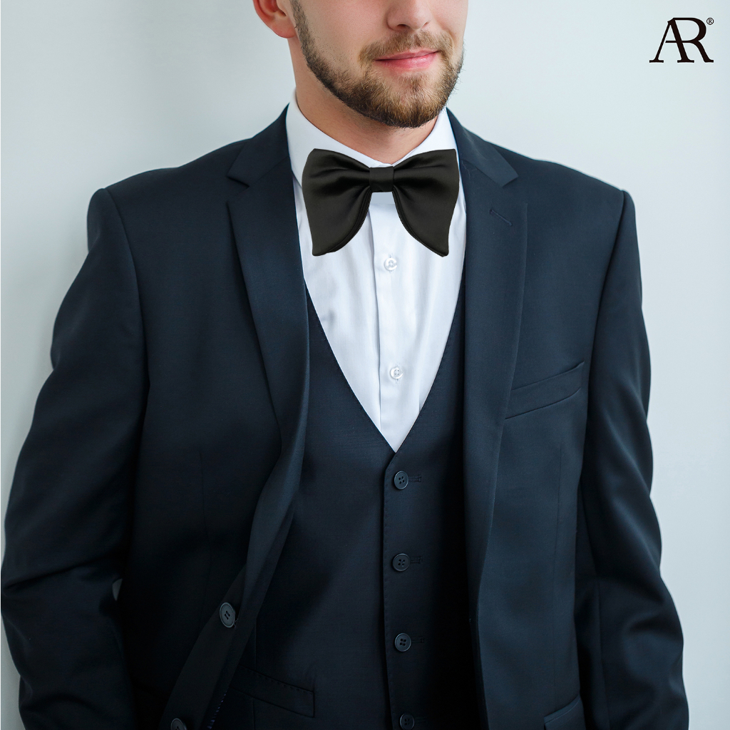 ANGELINO RUFOLO Bow Tie Butterfly(โบว์หูกระต่าย) ผ้าไหมทออิตาลี่คุณภาพเยี่ยม ดีไซน์ ปีกผีเสื้อแบบ 3 จีบ สีดำ