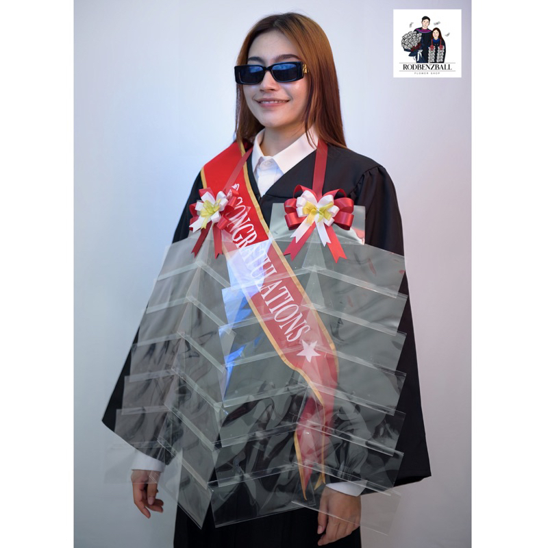 พวงมาลัย เงิน ใส่ ธนบัตร แบงก์ 30 ใบ (ข้างละ 15 ใบ) ของขวัญรับปริญญา ของขวัญปัจฉิม ของขวัญบัณฑิต
