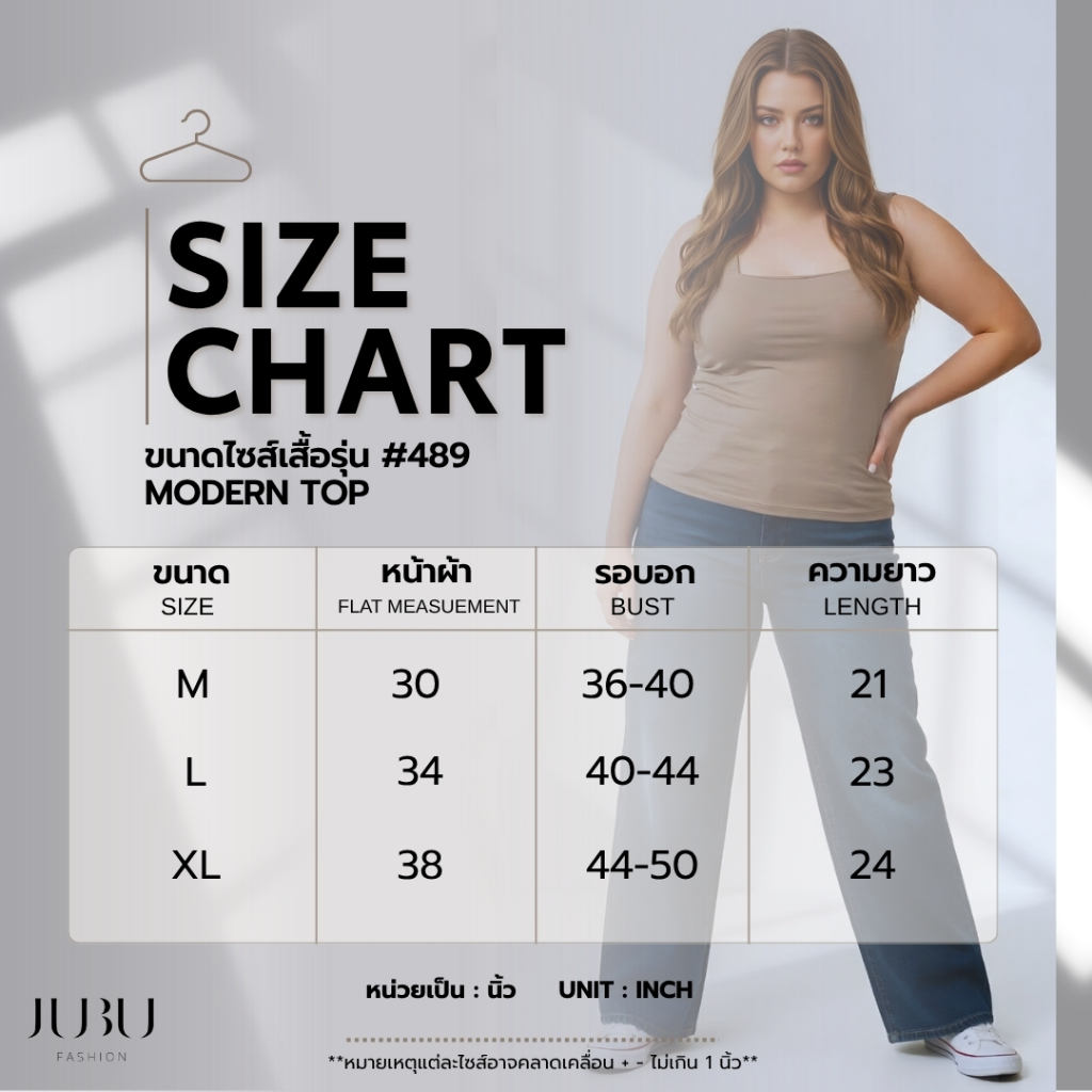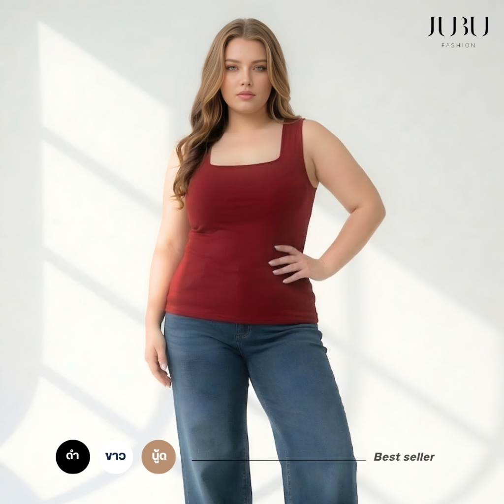 Modern Top (ไม่มีฟองน้ำ) เสื้อกล้ามคอเหลี่ยม สาวอวบ ผ้าเรย่อน ซับใน 2 ชั้น อก35-50นิ้ว พร้อมส่ง#489