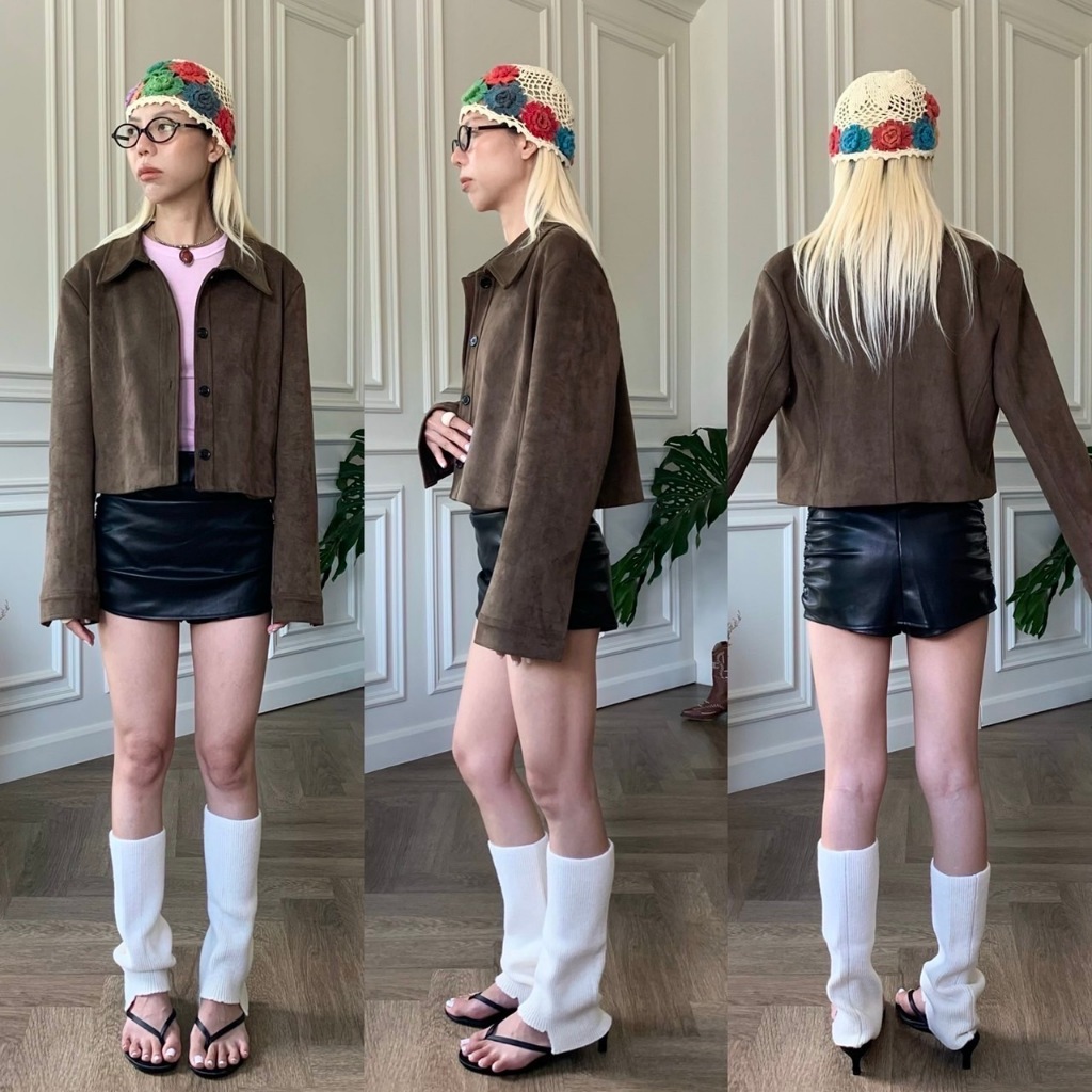 [ช,ญใส่ได้]โค้ดลด30%+โค้ดร้าน100฿+ส่งด่วนฟรี! Fashionstore-Odin Crop-เสื้อครอปหนังกลับ(870)