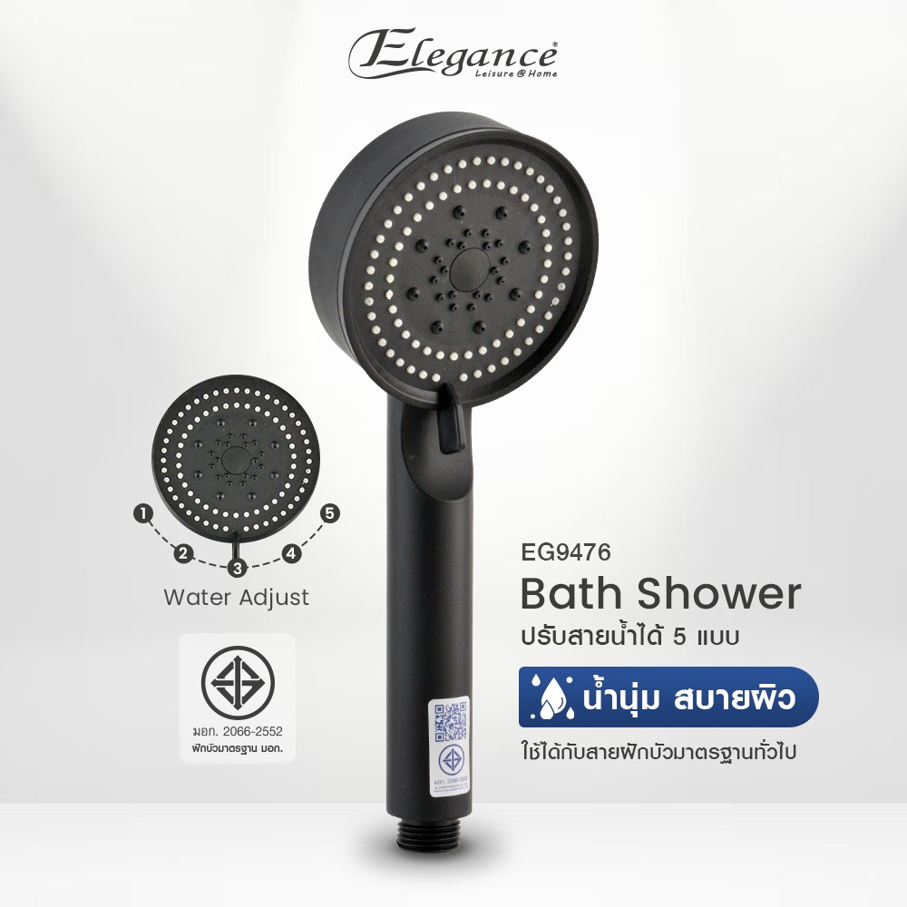 ส่งจากไทย สุขภัณฑ์ หัว ฝักบัวอาบน้ำ ลอเรน (แบล็ค/กาไฟว์/โครเมี่ยม) ปรับน้ำได้ 5ระบบ น้ำนุ่ม สบายผิว.