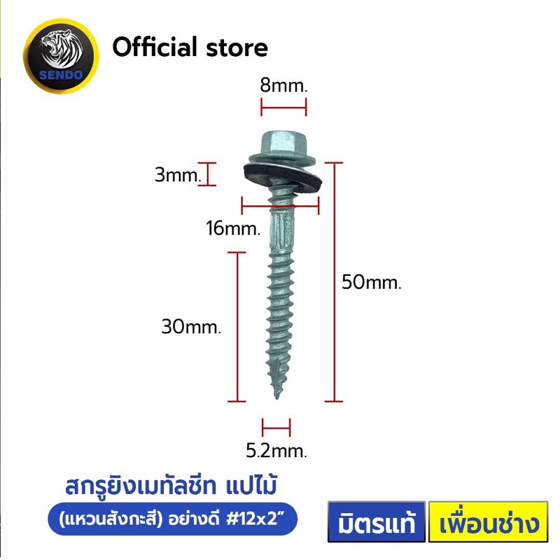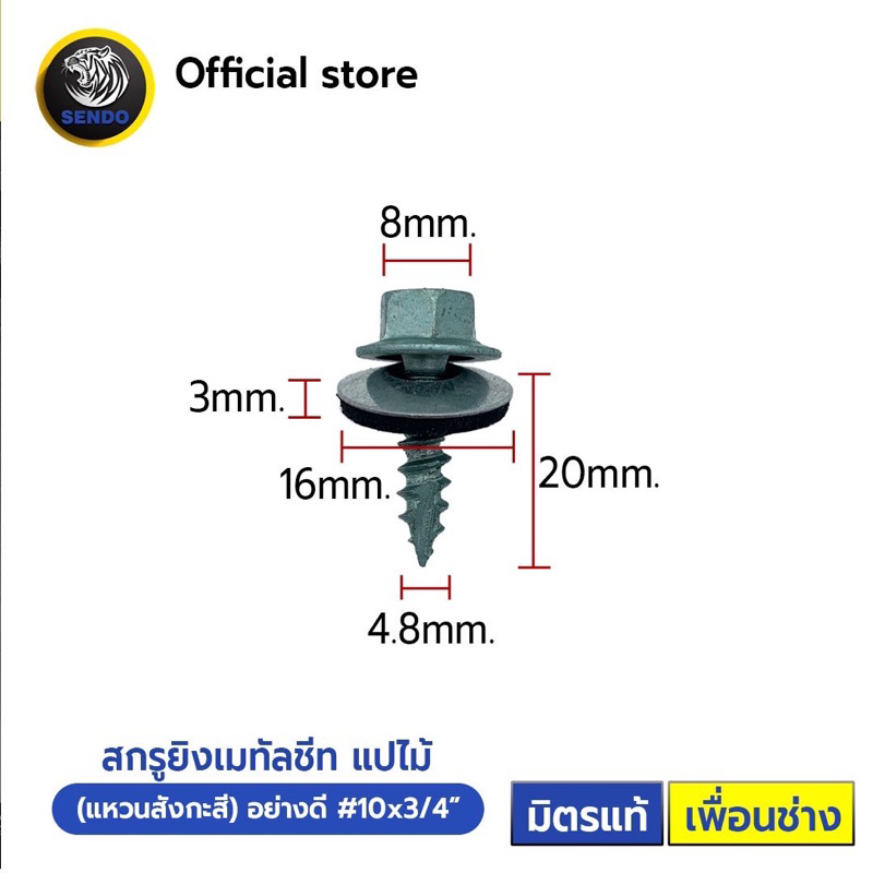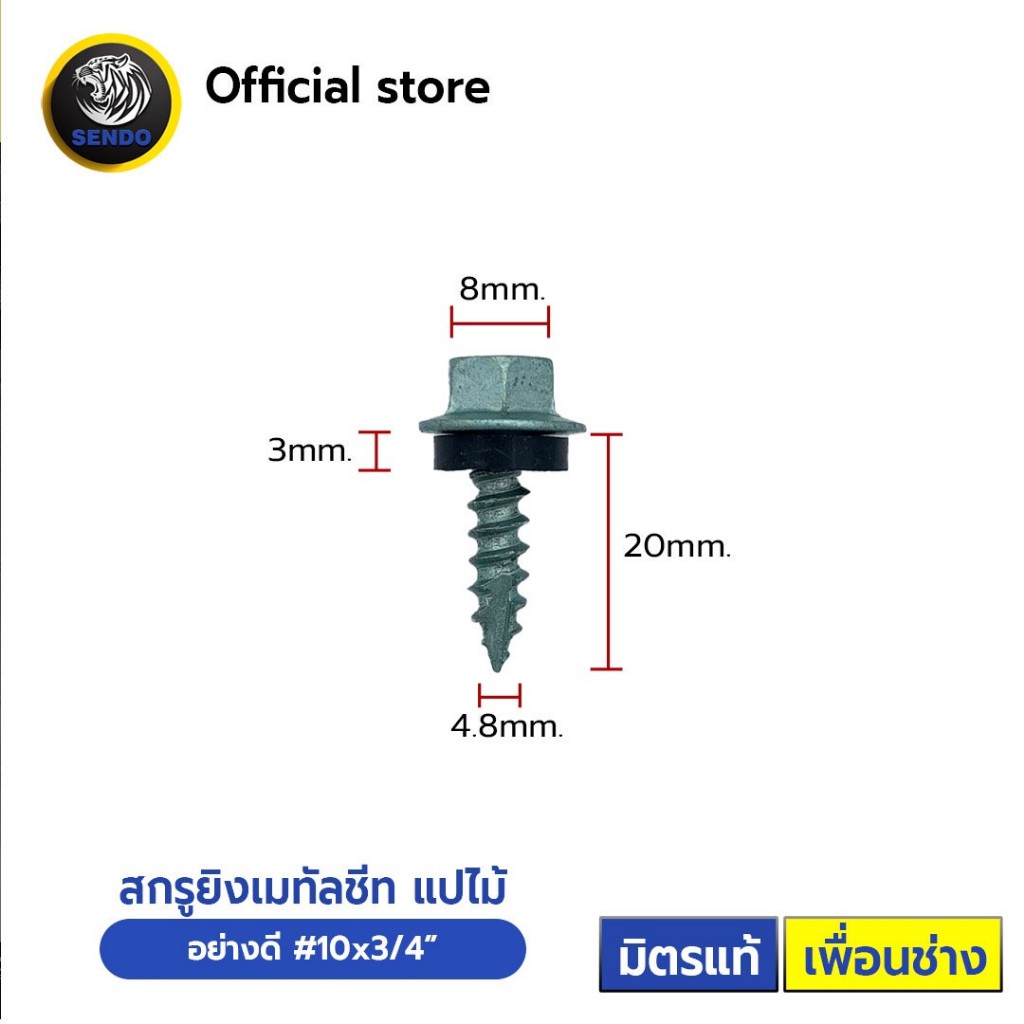 SENDO สกรูยิงเมทัลชีท แปไม้ อย่างดี(ยาง/แหวนสังกะสี) ถุงละ100ตัว