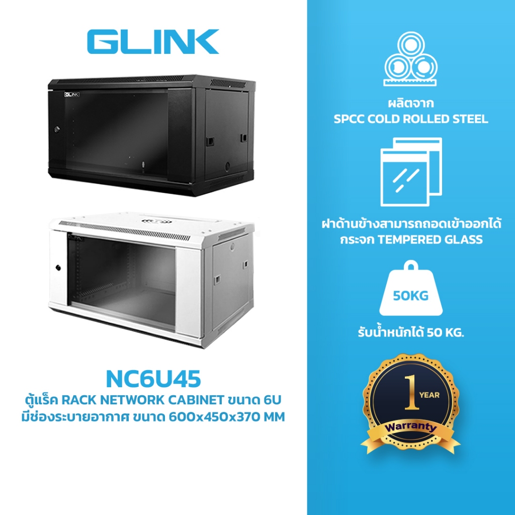 GLINK NC6U45 ตู้แร็คสำหรับงาน NETWORK RACK CABINET ขนาด 6U 600*450*370