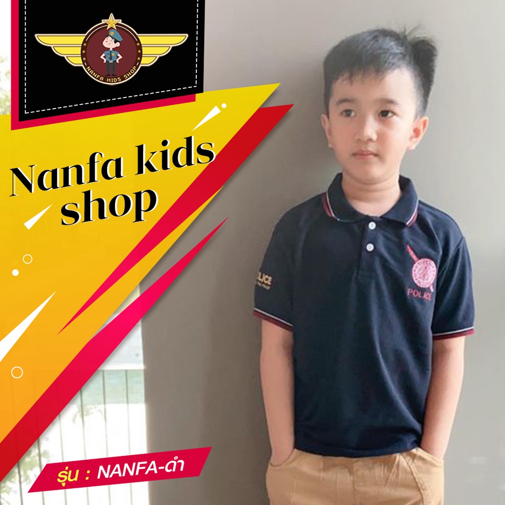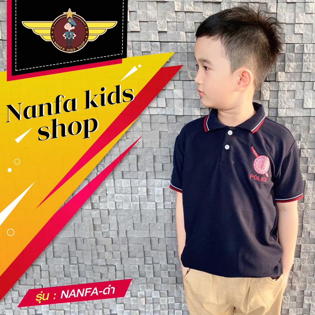 เสื้อโปโลเด็ก เสื้อโปโลตำรวจเด็ก เสื้อโปโลเด็กชาย รุ่น Nanfa-ดำ งานคุณภาพระดับแบรนด์เนม ออกแบบดีไซน์โดยคนไทยสุดปราณีต