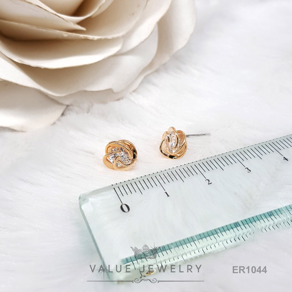 ต่างหูแป้น ประดับคริสตัลแท้ เม็ดกลม ล้อมลายสาน มี2สี ขนาดเล็ก ตุ้มหู เครื่องประดับ ER0147 ER1044 ValueJewelry
