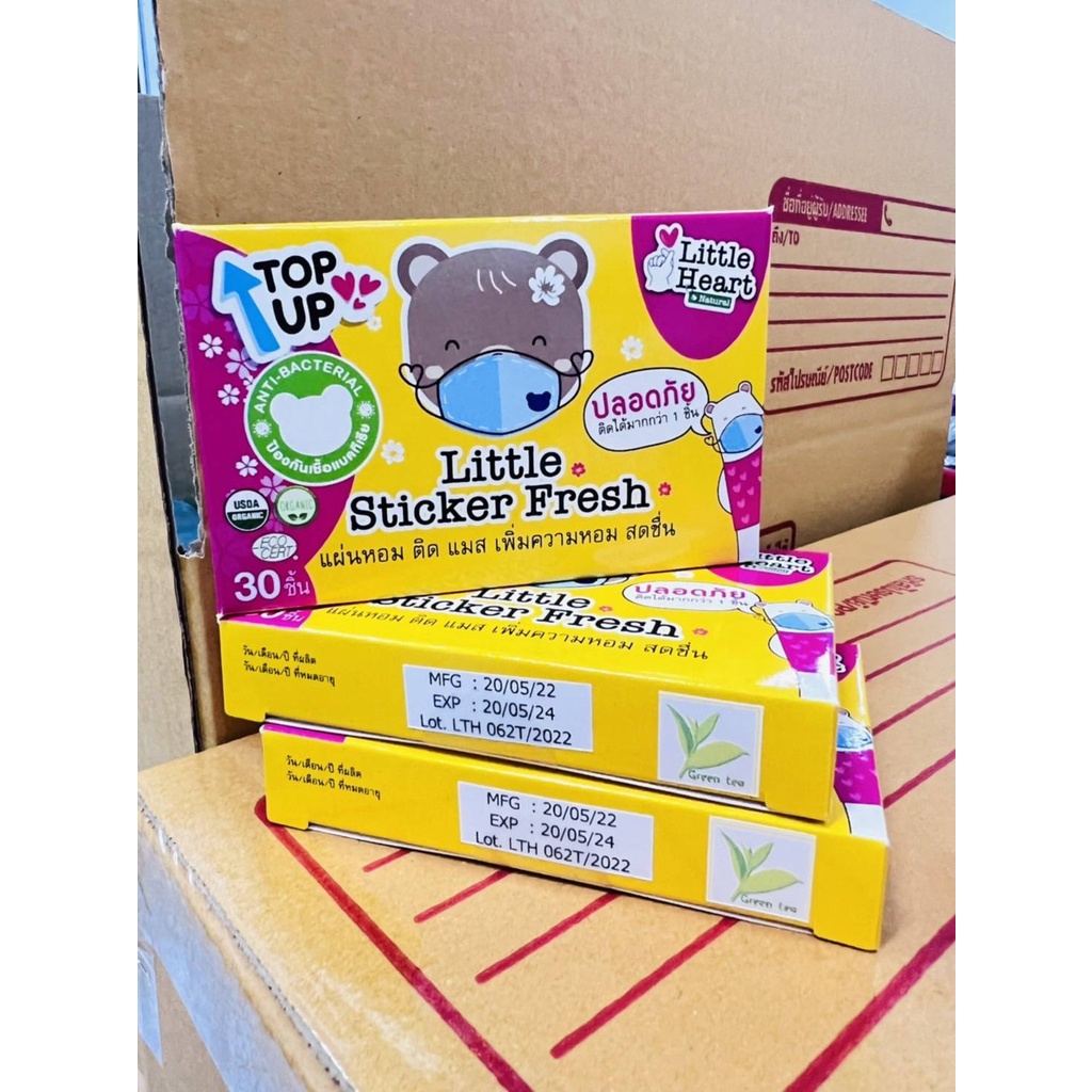 กลิ่นชาเขียวผสมมิ้นต์ คละสี แผ่นหอมติดแมส 1กล่อง (รูปหมี30ชิ้น) สติ๊กเกอรหอมติดแมส สติ๊กเกอร์ติดแมส แผ่นหอมบรรเทาหวัด