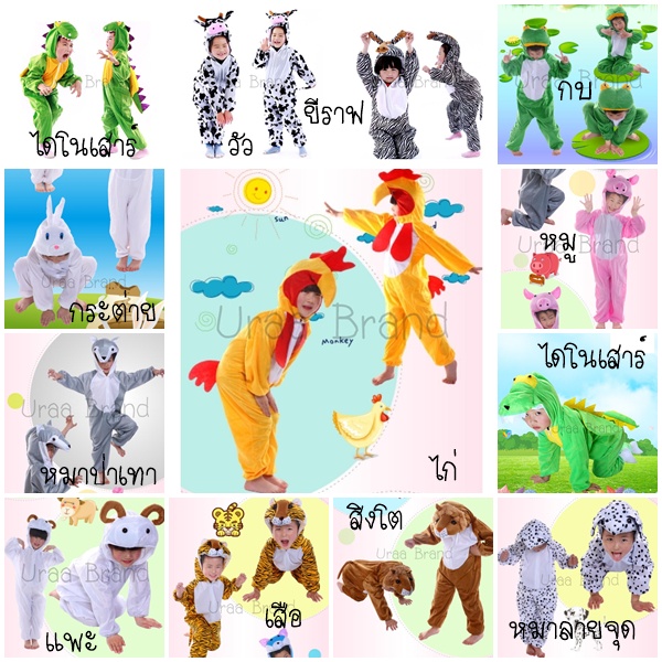 18 แบบ (พร้อมส่ง) ชุดสัตว์ ชุดสัตว์เด็ก แฟนซีเด็ก เช่น ไก่ หมู กบ ผึ้ง ไดโนเสาร์ แพะ แกะ สิงโต เต่า นกแก้ว