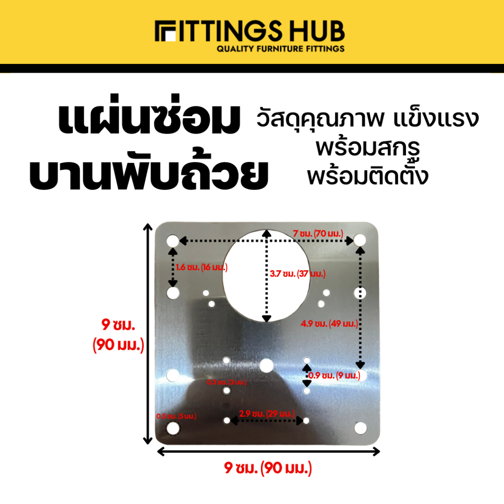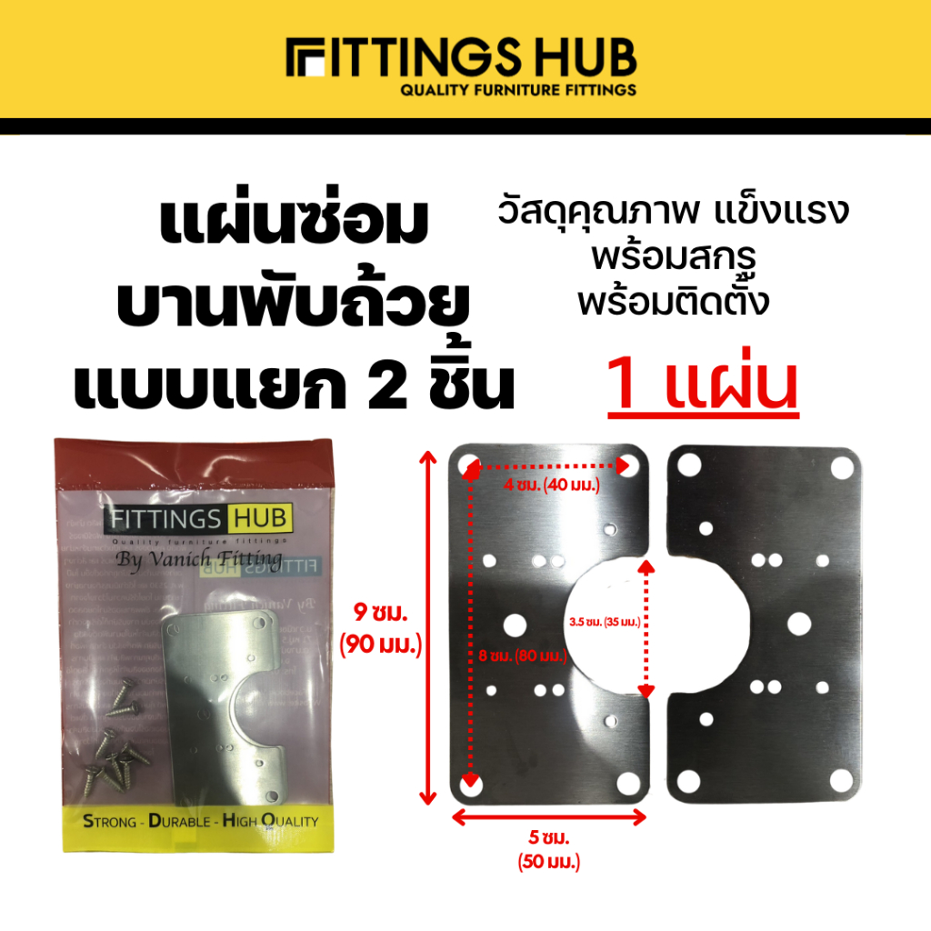 [1แผ่น] แผ่นซ่อมบานพับถ้วย พร้อมสกรู บานพับบานตู้เสื้อผ้า ตู้โชว์ สำหรับบานพับ 35 mm