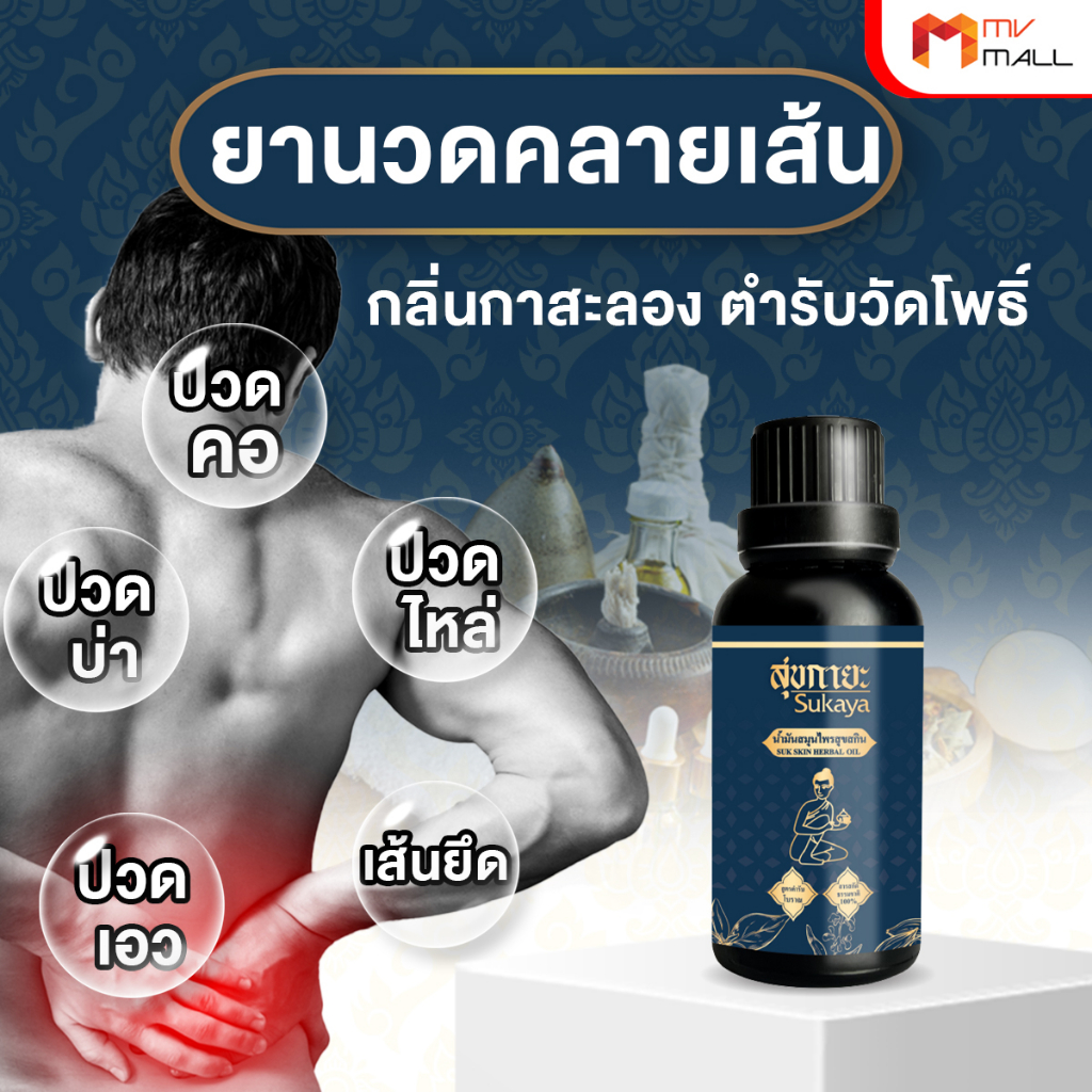 Sukaya สุขกายะ น้ำมันนวดคลายเส้น กลิ่นกาสะลอง ตำรับ วัดโพธิ์ ขนาด 30 ml.
