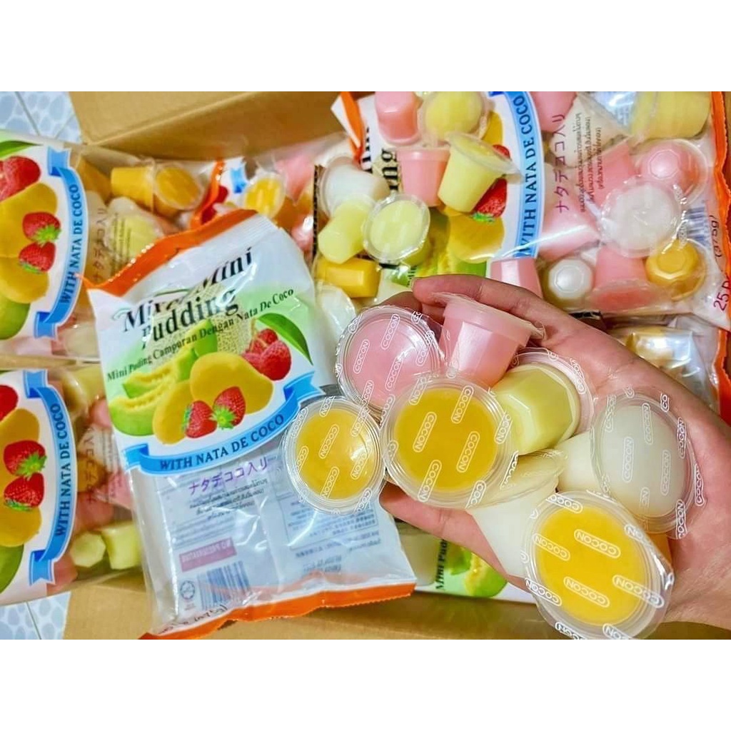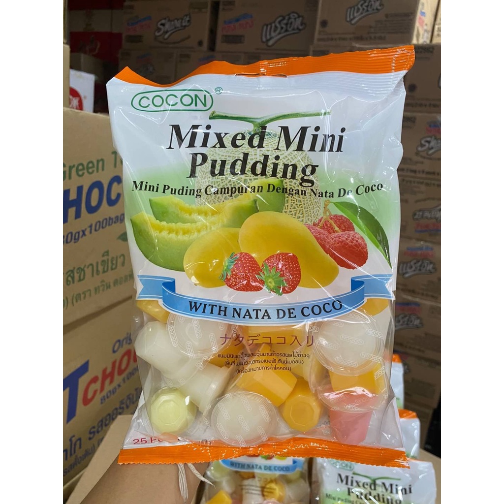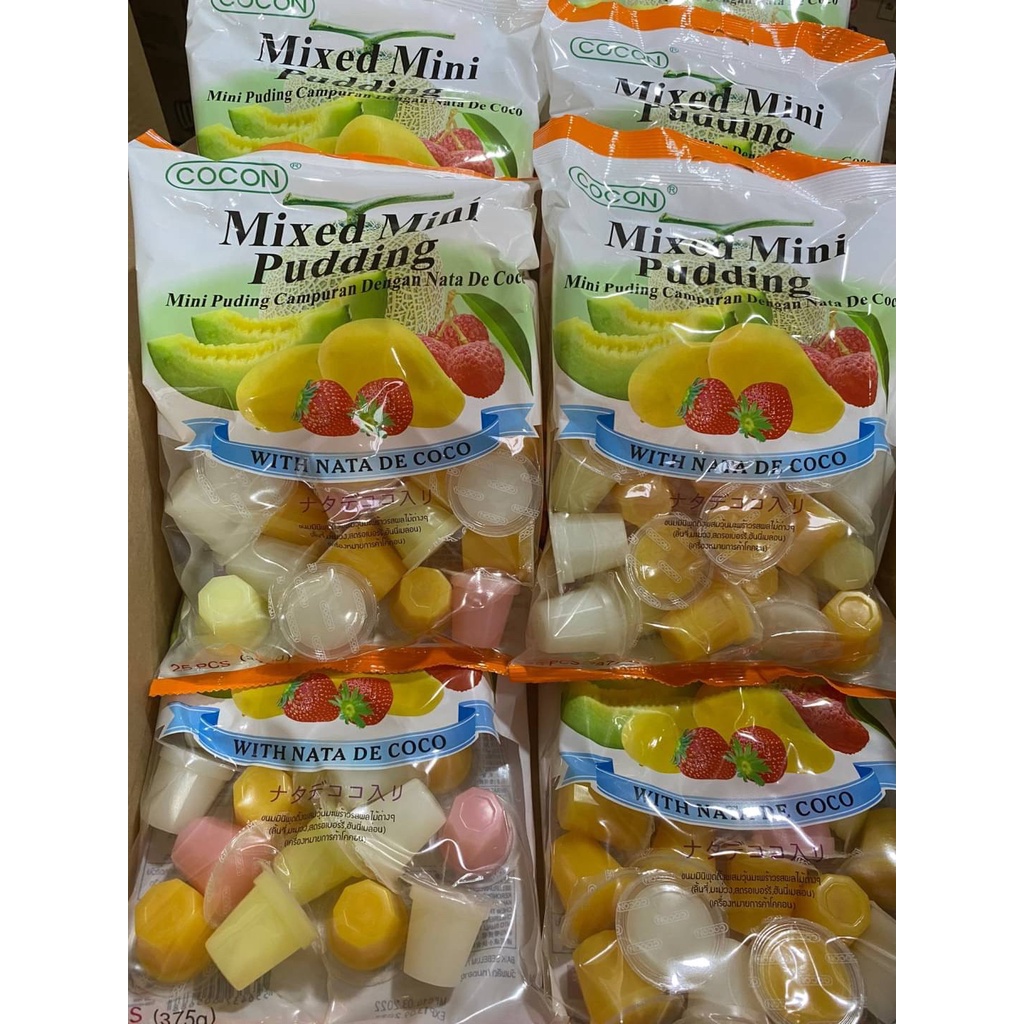 Cocon มินิพุดดิ้ง มินิพุดดิ้งเยลลี่ผสมวุ้นมะพร้าวรสผลไม้ต่างๆ ขนาด 375 กรัม จำนวน 25 ชิ้น ค่าส่งถูกๆ ราคาส่ง