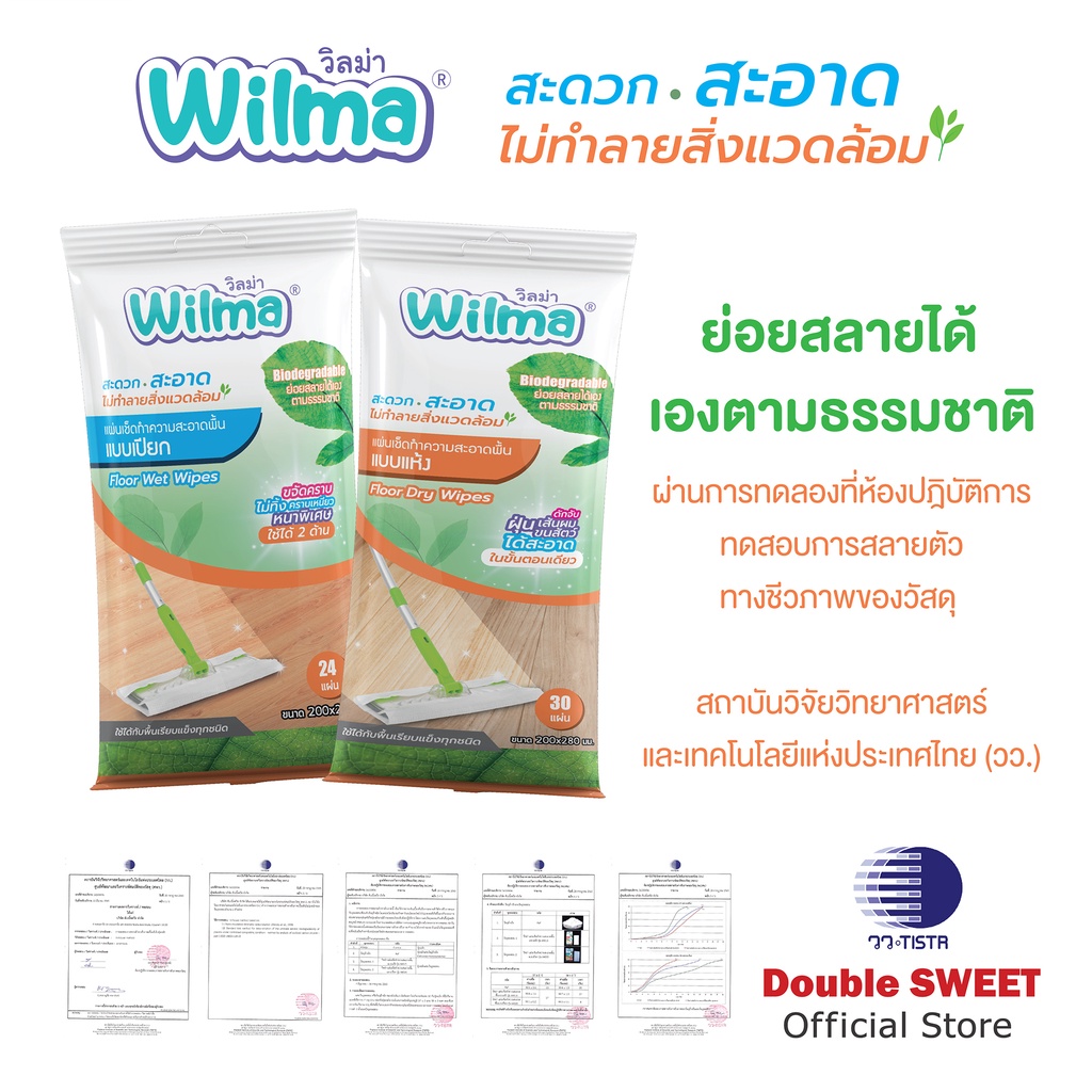[ ซื้อคู่ ถูกกว่า ] Wilma วิลม่า แผ่นเช็ดทำความสะอาดพื้นแบบเปียก // แพ็ค 2 ห่อ // ย่อยสลายได้ //