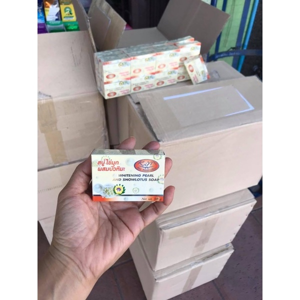 ( ยกโหล) สบู่ไข่มุกผสมบัวหิมะ kim ยกโหล ( 12 ก้อน) ขนาด 50 กรัม