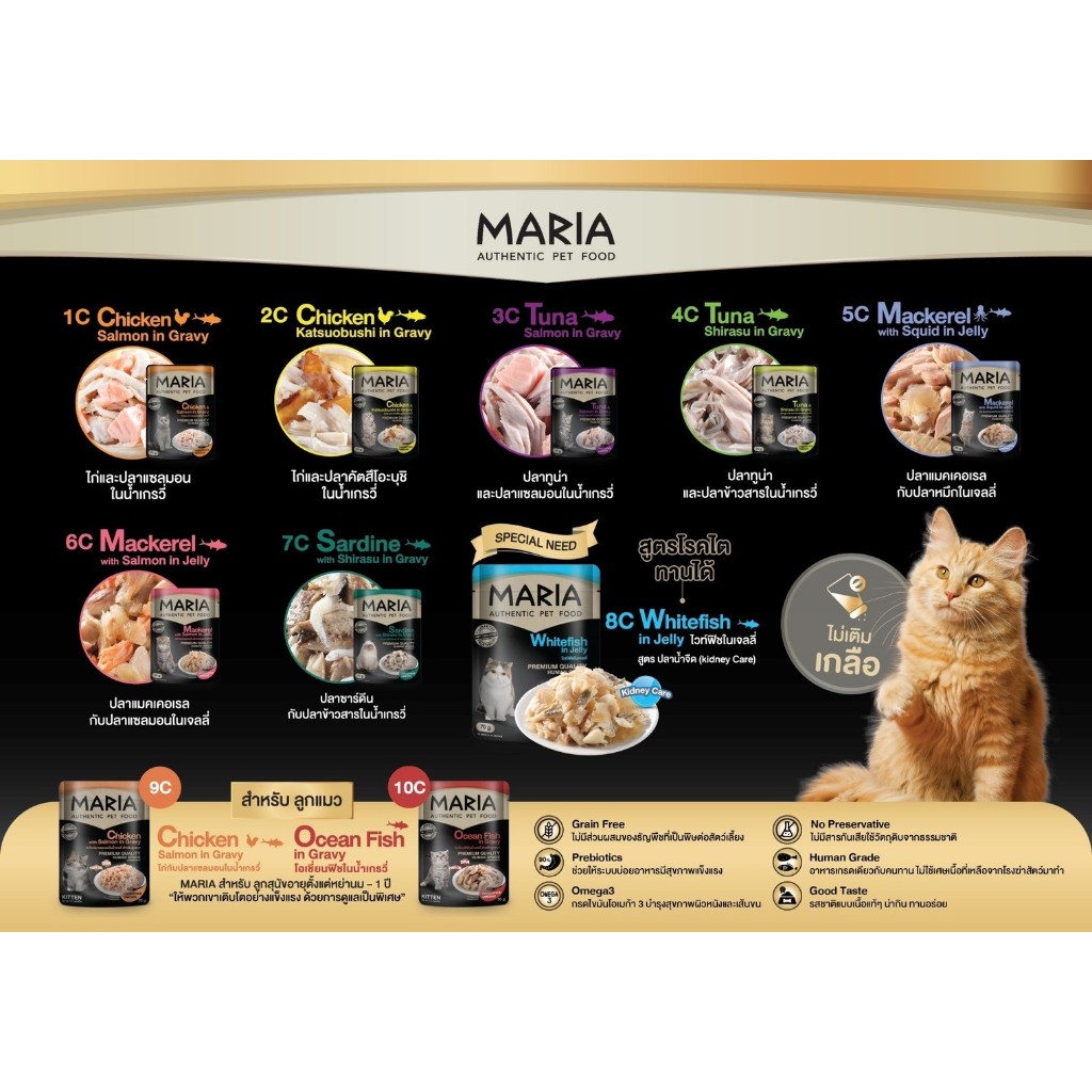 Maria มาเรีย อาหารแมวเปียก แมวโต ลูกแมว ขนาด 70g. จำนวน 1 ซอง