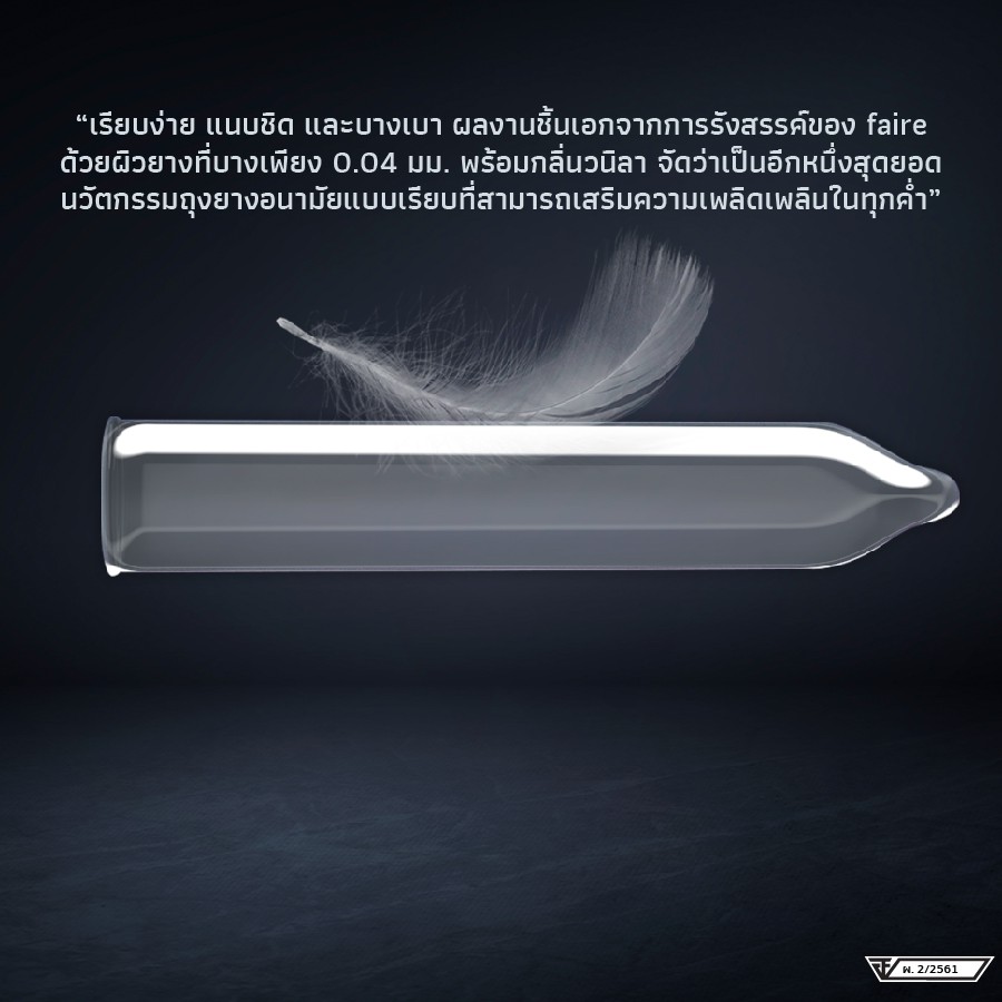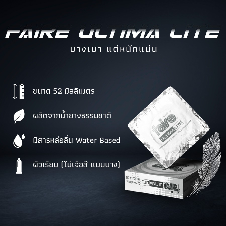 แฟร์ ถุงยางอนามัย ขนาด 52 มม แบบบาง 0.04 กลิ่นวนิลา อัลติมา ไลท์ 3 ชิ้น จำนวน 1 กล่อง Faire Ultima lite Condom 3'S 1 Box