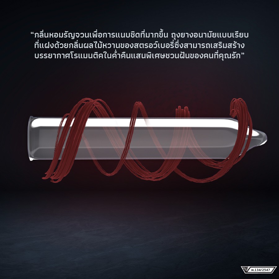 [Pack 4] แฟร์ กลิ่นสตรอเบอร์รี่ ถุงยางอนามัย ผิวเรียบ 49 มม จำนวน 4 กล่อง รวม 12 ชิ้น Faire Strawberry Condom 12 Pieces