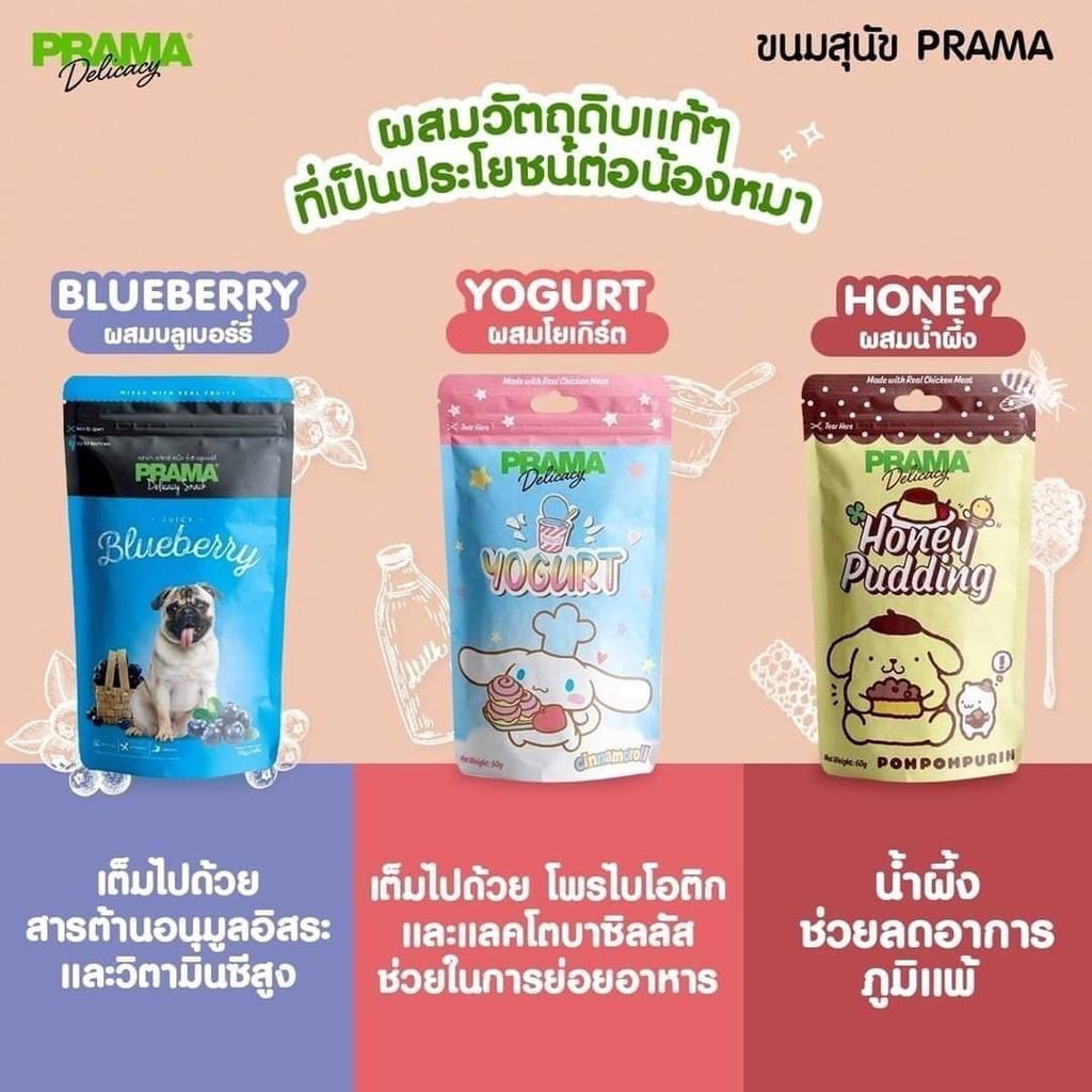 ขนมสุนัข Prama พราม่า ขนาด 60-70 กรัม (ครบ 15 รสชาติ)