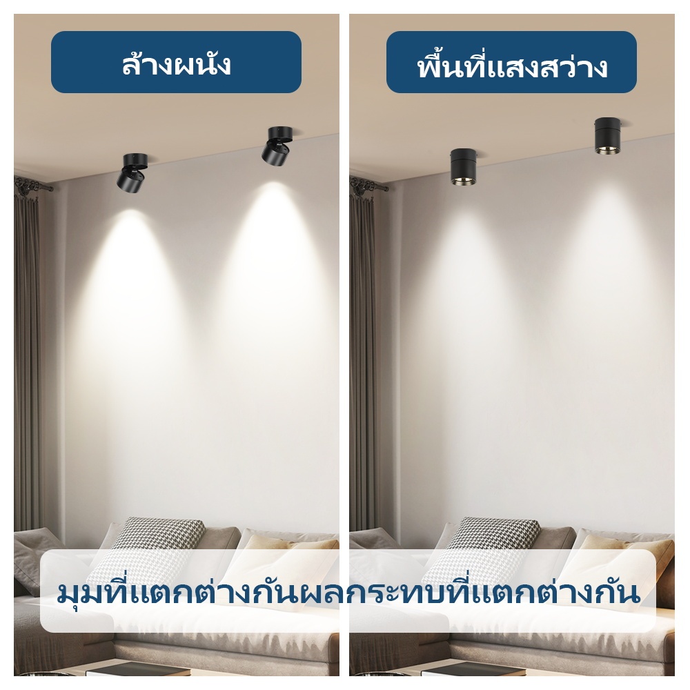 【จัดส่ง3วัน】ไฟดาวน์ไลท์ LED ไฟสปอตไลท์ แบบพับได้ โคมแทรคไลท์ติดลอย เปลือกอลูมิเนียม COB สปอตไลท์ Track Lighting โคมไฟเพด