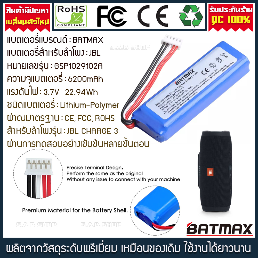 แบตเตอรี่ลำโพง JBL Flip3 / Flip4 / Flip5 / Charge2 / Charge3 / Xtreme / Boombox / Pulse 2 3 battery