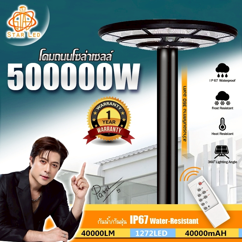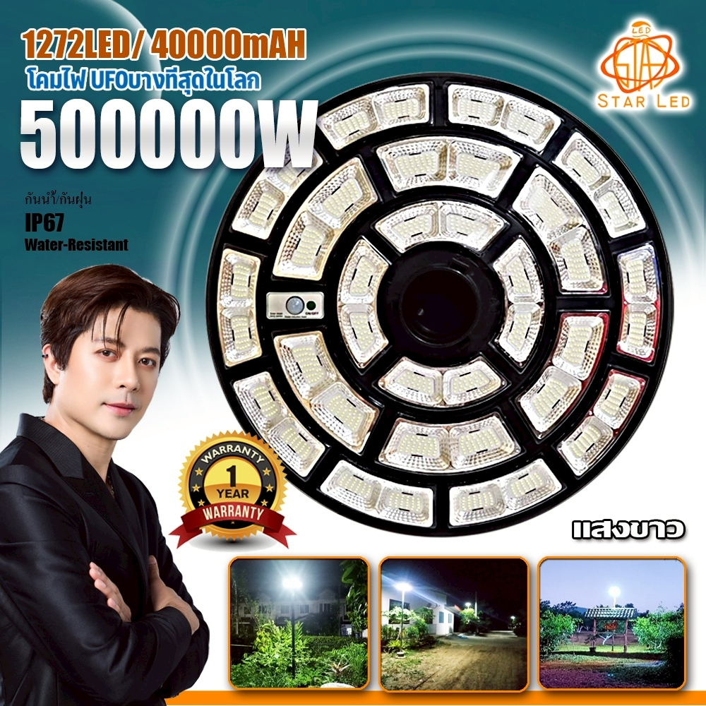 ใหม่ล่าสุด UFO-500000W-W แสงขาว 1272LED สว่าง 360 องศา กันน้ำ IP67 ใช้พลังงานแสงอาทิตย์100%