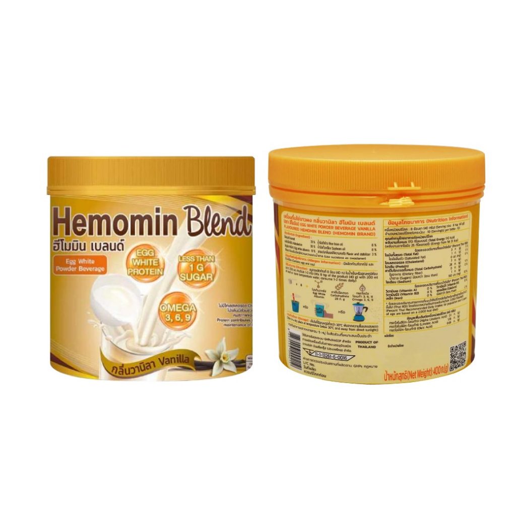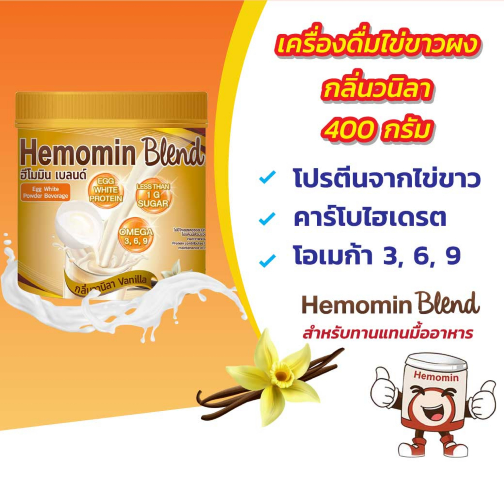 HEMOMIN Blend ไข่ขาวผง รส Vanilla 400g. เครื่องดื่มไข่ขาวผง กลิ่นวานิลลา ฮีโมมิน เบลนด์