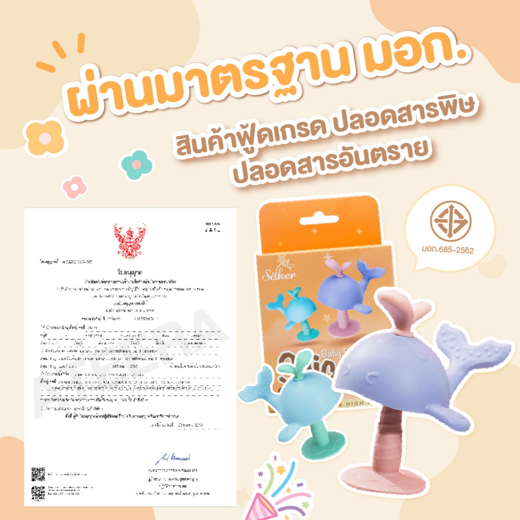 (มีมอก.)ยางกัดพลาสติกซิลิโคน Saker ปลอดสารพิษ ฟู้ดเกรด เข้าปาก ได้อย่างสบายใจ ทนความร้อนเข้าเวฟได้