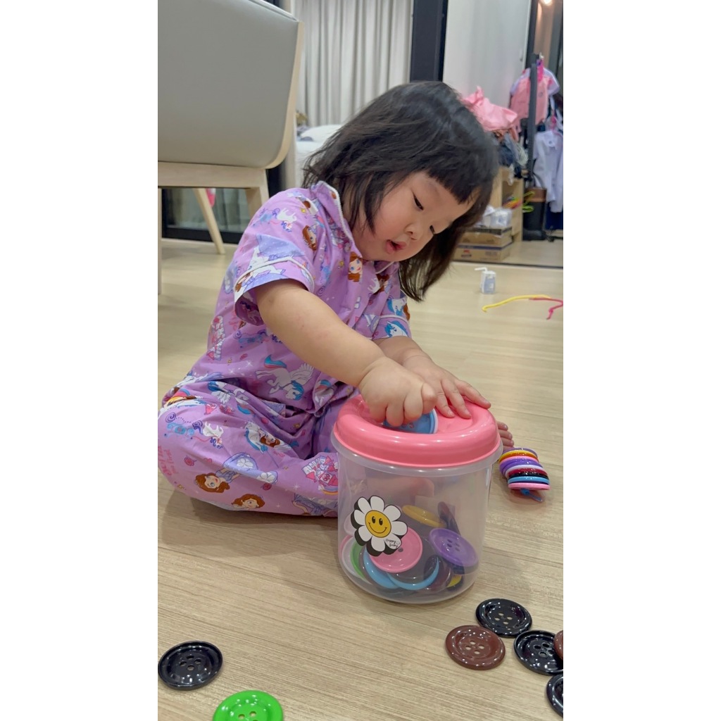 กระดุมยักษ์ กระปุกกลมใบใหญ่ 50 เม็ด 😋ฟรีการ์ดสี+เชือก‼️ Happy Baby Food gradeของเล่นเด็ก