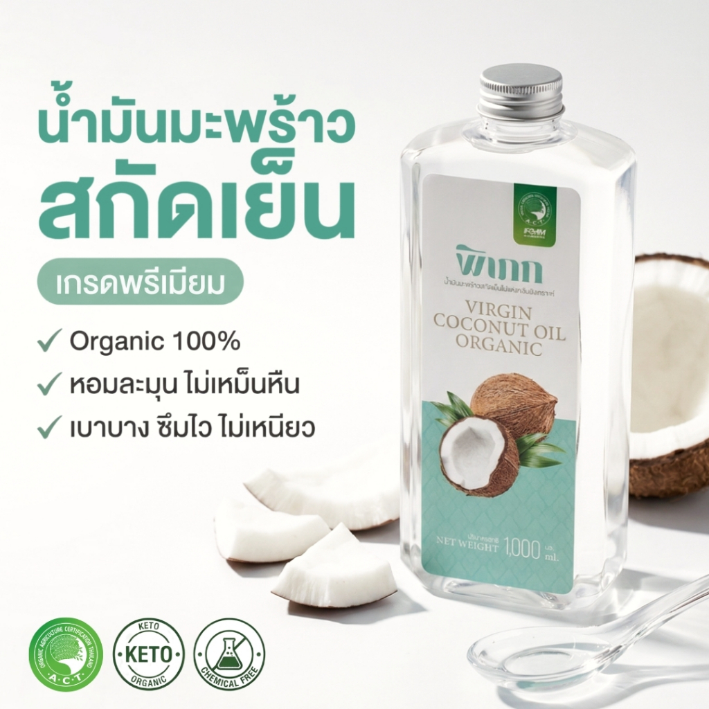 น้ำมันมะพร้าวสกัดเย็น 100ml พิเภก ออร์แกนิค กินได้ บำรุงผิว หมักผม Virgin Coconut Oil