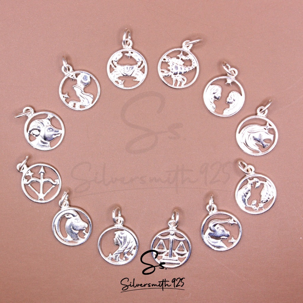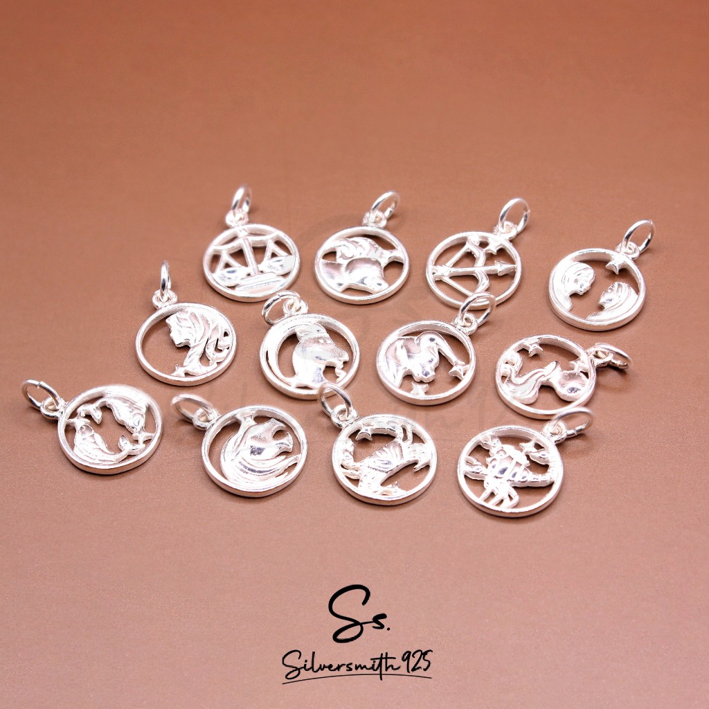 จี้ราศี 12 ราศี เงินแท้ 92.5% จี้เงินแท้ zodiac charm ขนาด 10mm จี้สำหรับสร้อยคอ สร้อยข้อมือ