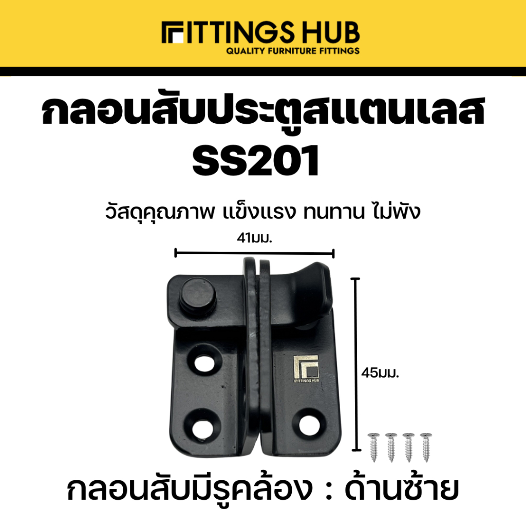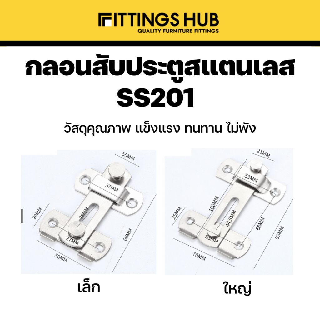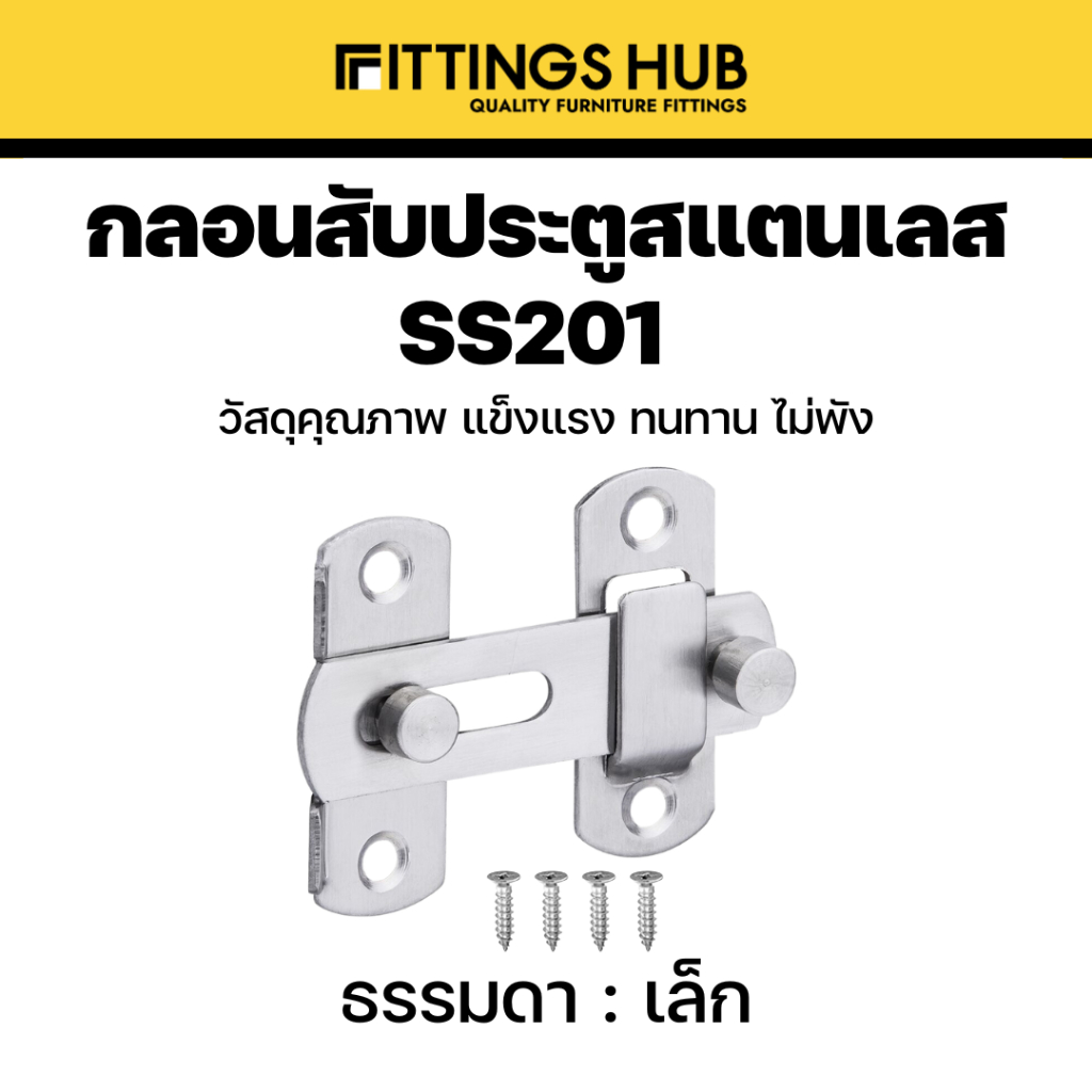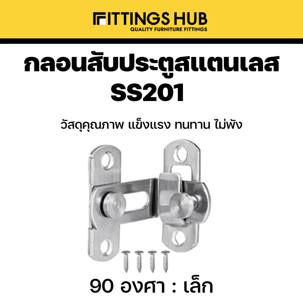 กลอนประตูสับ สแตนเลสแท้ 201 แบบธรรมดา / 90 องศา กลอนสับมีรูคล้อง กลอนสับหน้าต่าง - fittingshub