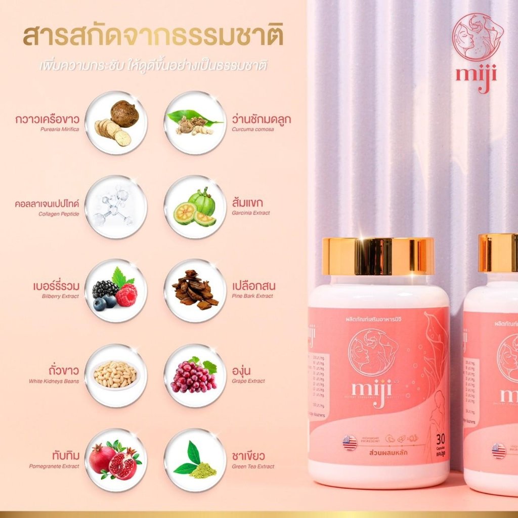 miji มิจิ อาหารเสริม สมุนไพรผู้หญิง วัยหมดประจำเดือน1 กระปุก 30 แคปซูล ไม่ระบุชื่อสินค้าหน้ากล่อง