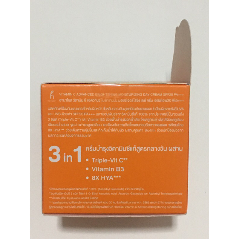 โปร_ฮานาโซล ครีมบำรุงวิตามินซี (กลางวัน) Vitamin C Advanced Brightening SPF20 ขนาด 50 กรัม