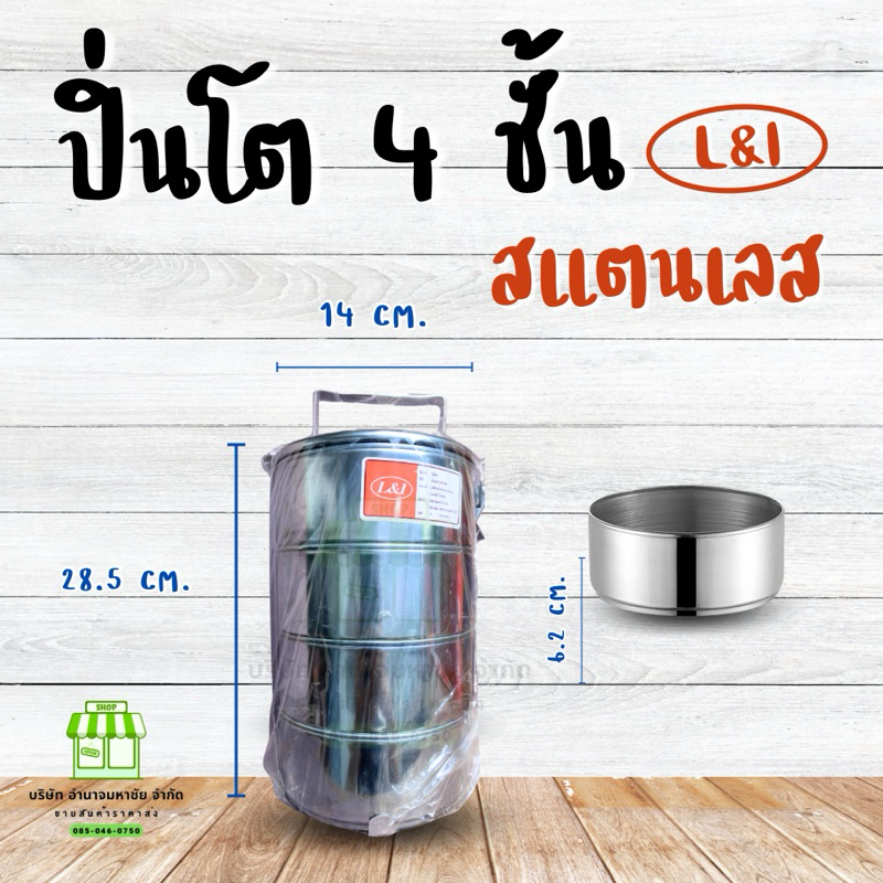 ปิ่นโตสเเตนเลส (ตรา L&I) 2,3,4 ชั้น วัสดุคุณภาพดี เเข็งเเรง เส้นรอบวง 14 ซม.