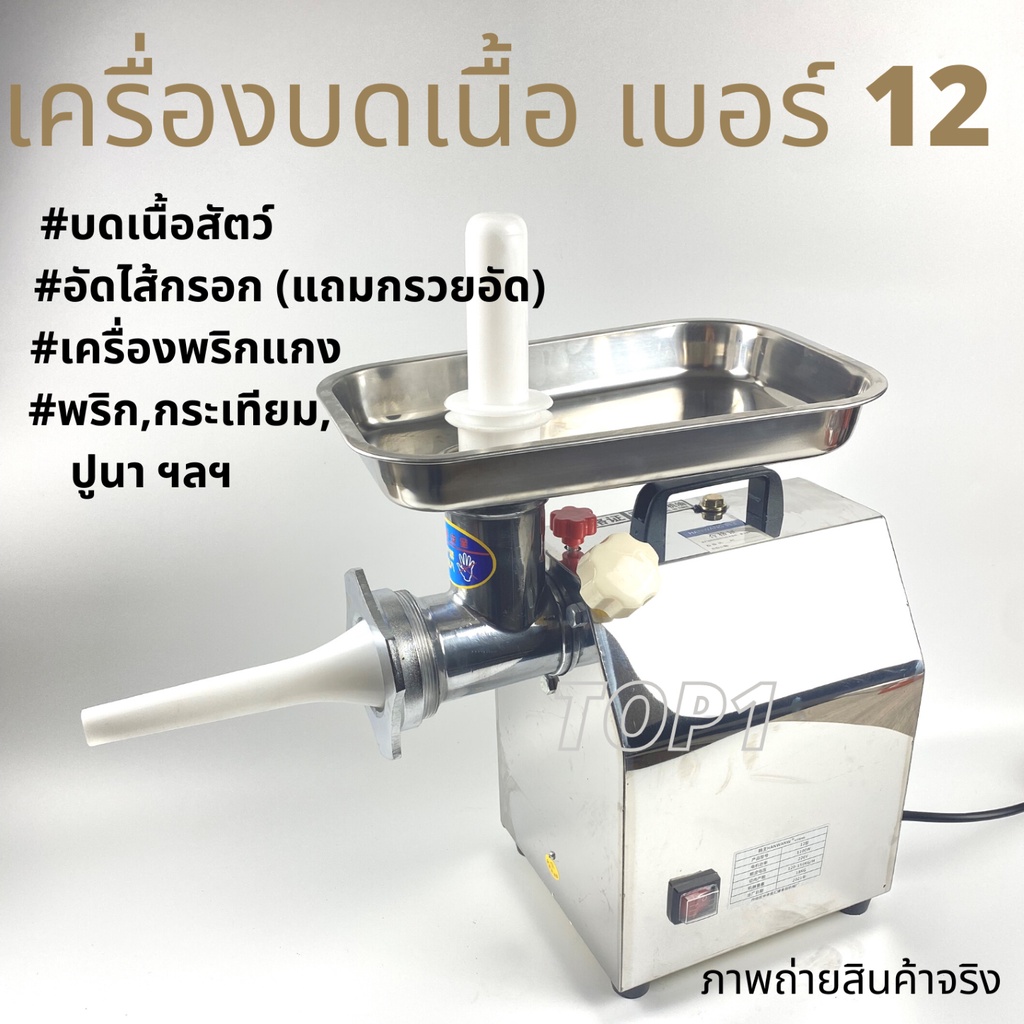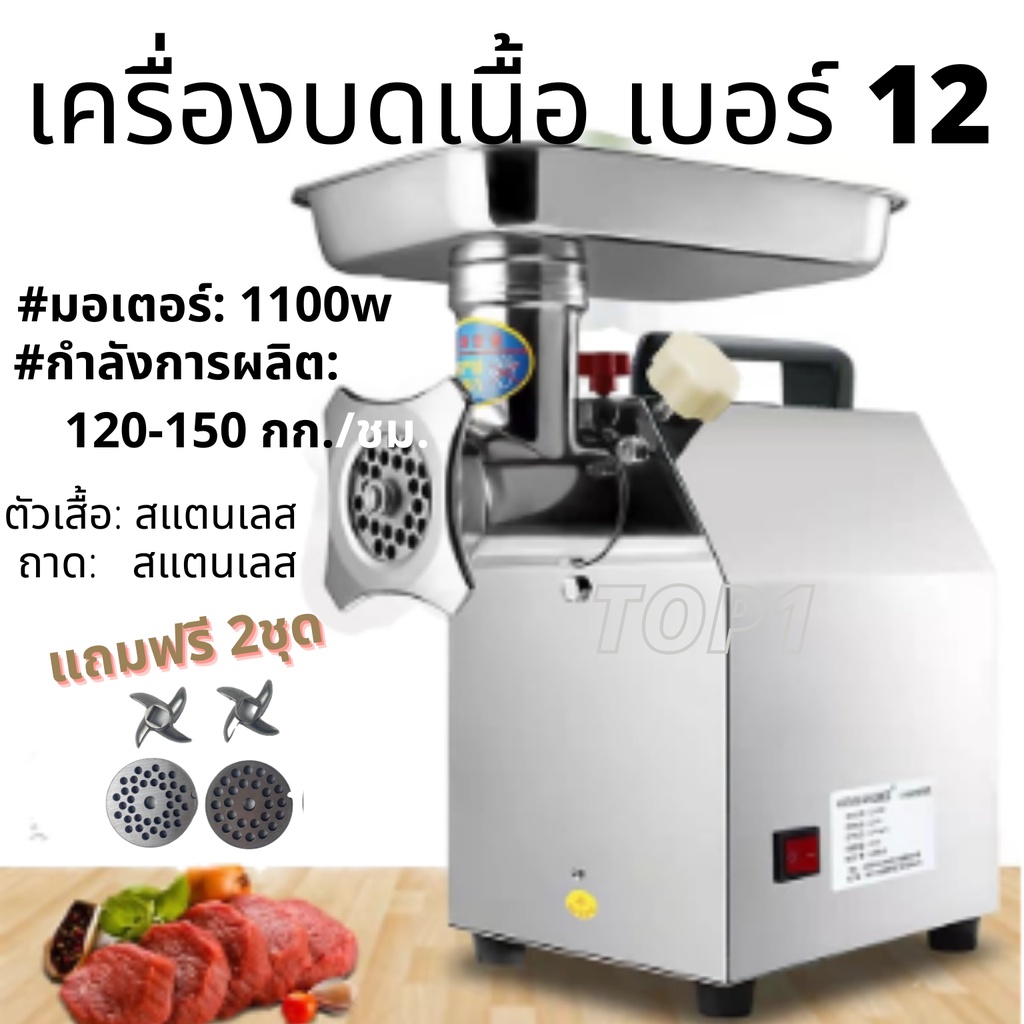เครื่องบดเนื้อ บดพริกแกง กระเทียม ฯลฯ อัดไส้กรอก เบอร์ 12 1100w พร้อมส่ง ฟรีใบมีด+แผ่นรังผึ้ง 2ชุด