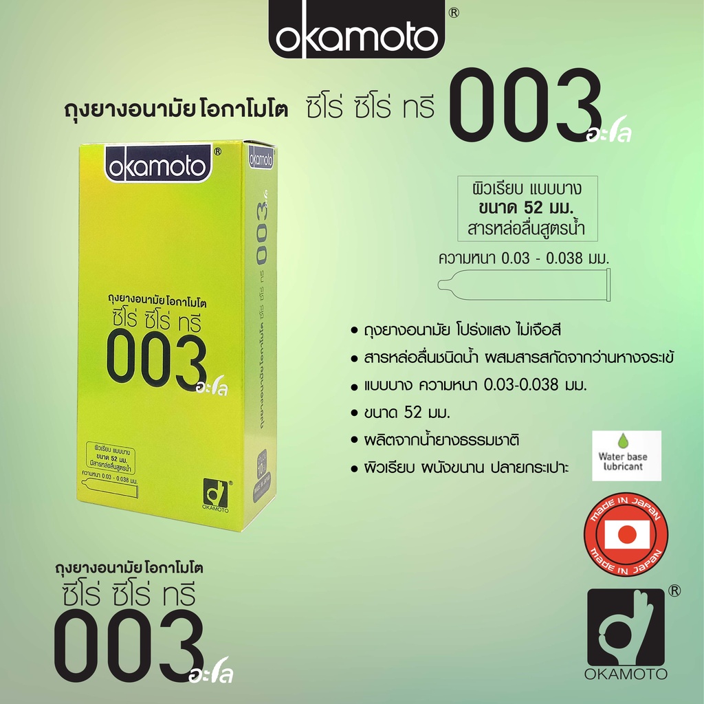 Okamoto ถุงยางอนามัย โอกาโมโต ซีโร่ ซีโร่ ทรี 003 อะโล บรรจุ 10 ชิ้น x2 กล่อง