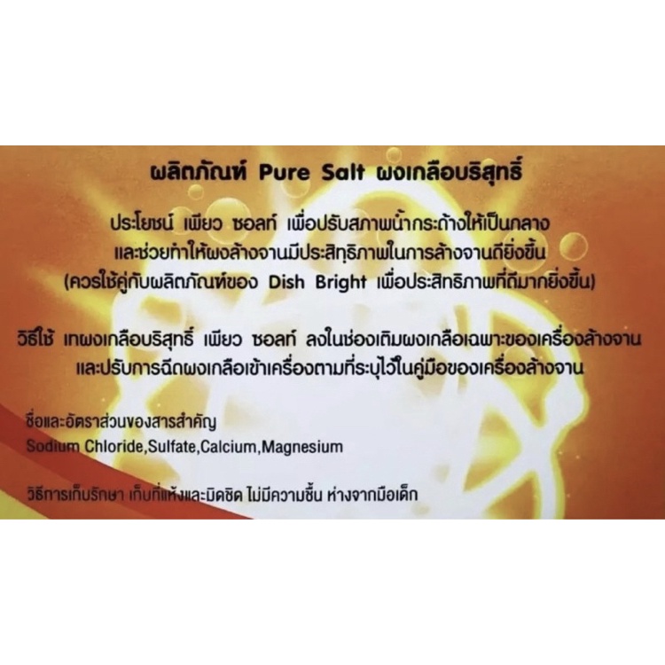 ผงเกลือปรับสภาพน้ำสำหรับเครื่องล้างจานอัตโนมัติ Dish Bright Pure Salt