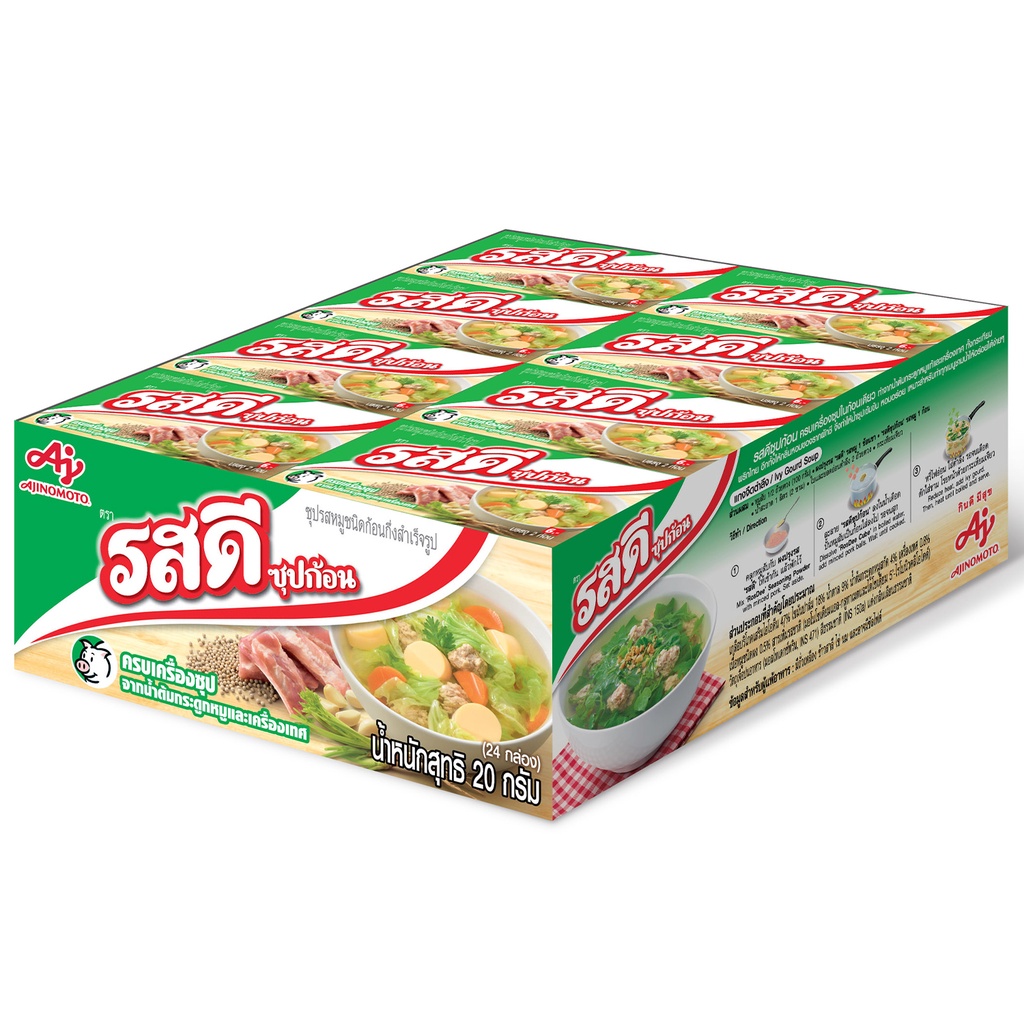 รสดี ก้อน รสหมูชนิดก้อนกึ่งสำเร็จรูป 20 กรัม แพ็ก 24 กล่อง