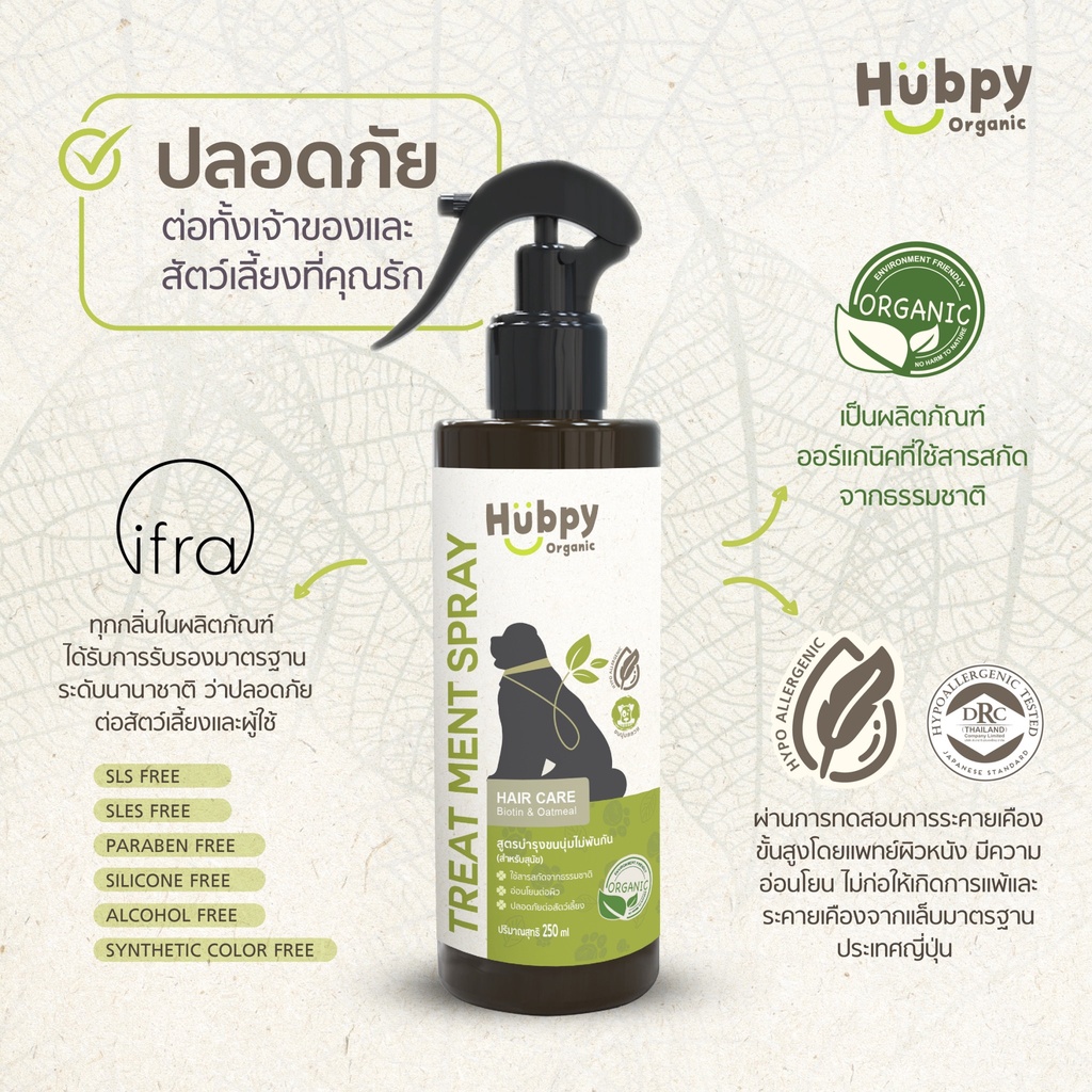 Hubpy Organic สเปรย์บำรุงขนสุนัข ออร์แกนิค ลดอาการคัน และกลิ่นอับ อย่างอ่อนโยน DOG Hair Spray 250 ml