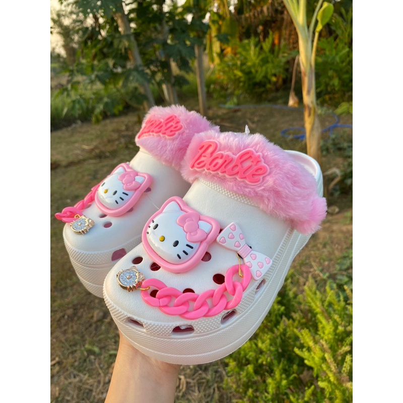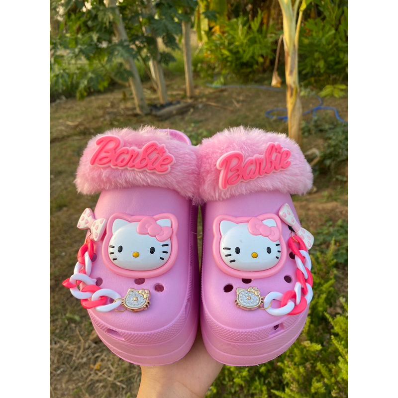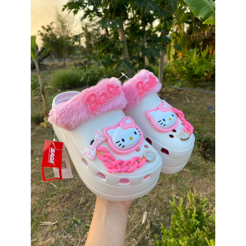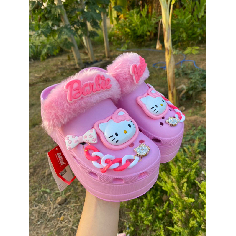 🔥พร้อมส่ง🔥รองเท้าหัวโตผู้ใหญ่ บาโอจิ Baoji พร้อมติดขนเฟอร์และตัวการ์ตูน คิดตี้น่ารักๆ เสริมส้น สูง 7 ซม. นุ่มใส่สบาย