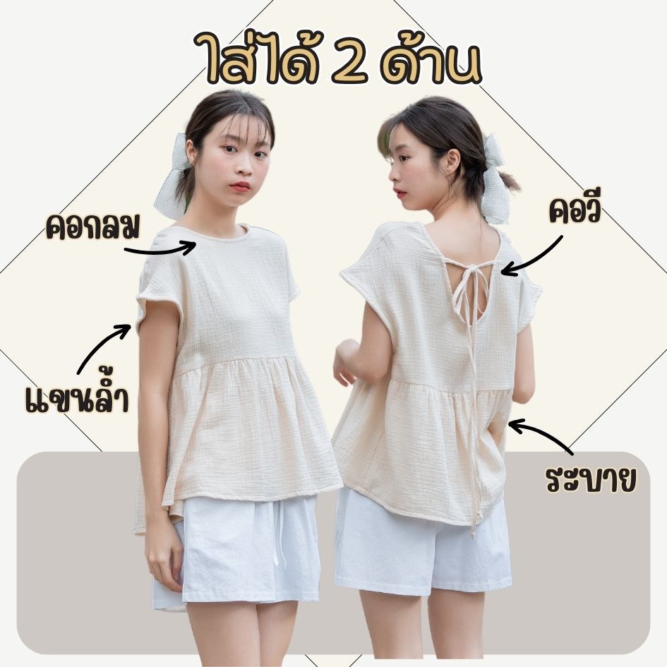 T18🎀 เสื้อแขนล้ำ ผ้าสาลู2ชั้นนุ่มมาก