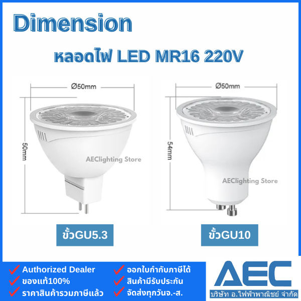 MEGAMAN หลอดไฟ แอลอีดี MR16 LED ขนาด 5W และ 7W ขั้วGU5.3 และ ขั้วGU10 (220V แบบต่อตรง) มุมแสงแคบ 36องศา