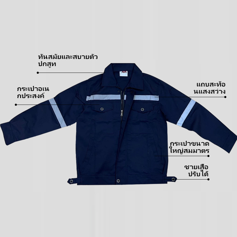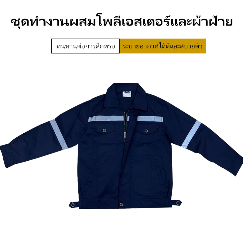 SY01 ชุดป้องกันภัย เสื้อช็อปช่าง เสื้อทำงาน ผ้าเวสปอยท์ซิปอก สาบปิดซ่อน แถบสะท้อนแสงหลัง แขน