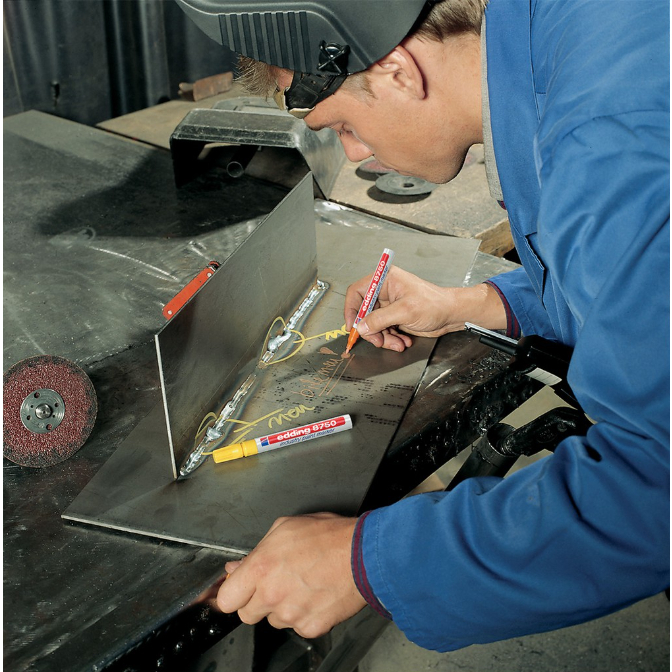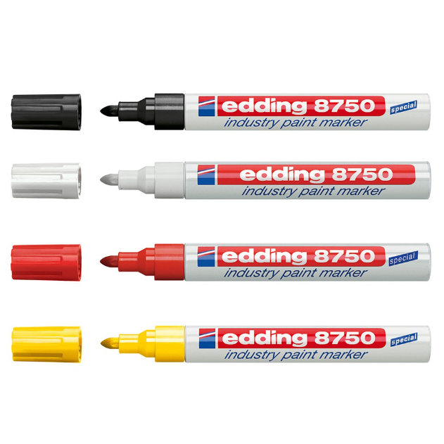 ปากกาเพ้นท์ เขียนเหล็กเปื้อนคราบน้ำมัน (2-4 มม.) สนิม แก้ว ไม้ พลาสติก ป้ายทะเบีนยรถ edding 8750 ผลิตจาก ประเทศญี่ปุ่น