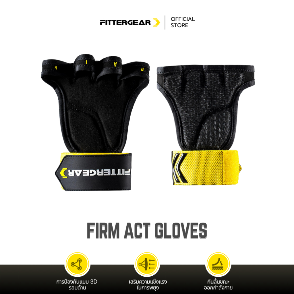 FITTERGEAR : FIRM ACT GLOVES ถุงมือออกกำลังกาย พร้อมสายรัดข้อมือ สำหรับ PULL-UPS & WEIGHT TRAINING