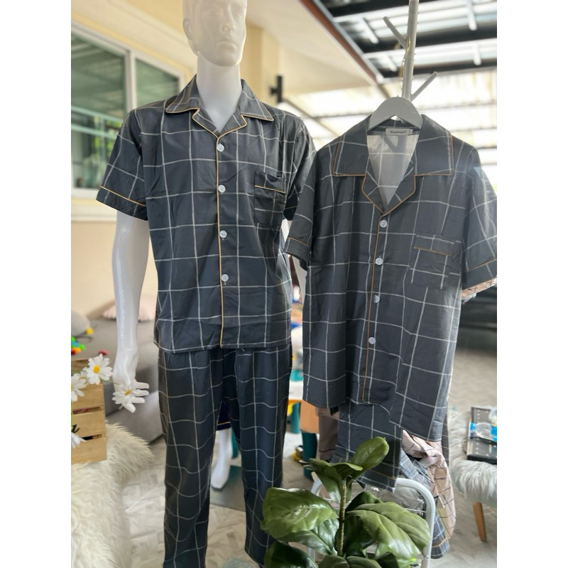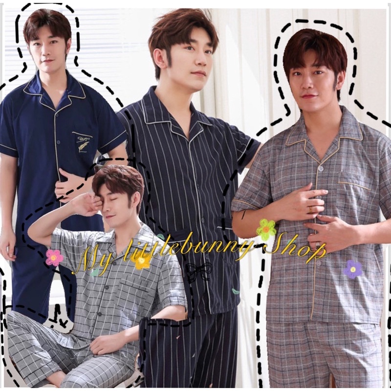 พร้อมส่ง🇹🇭ชุดนอนชายผ้าคอตตอนเเขนสั้น-ขายาว [Link 3XL ]M007/1
