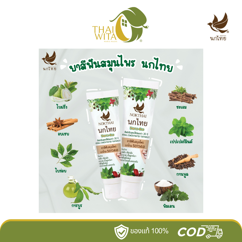 ยาสีฟันสมุนไพรนกไทย 5ดาว4เอ สูตรต้นตำรับ เข้มข้น 5star4a (แบบหลอด 30 กรัม)