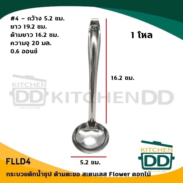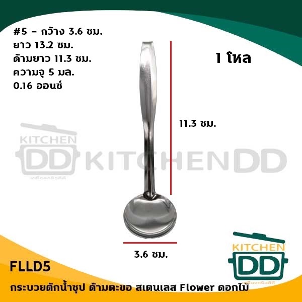กระบวยด้ามตะขอ ตักน้ำจิ้ม สเตนเลส ดอกไม้ เบอร์ 4/5/6 - 1 โหล