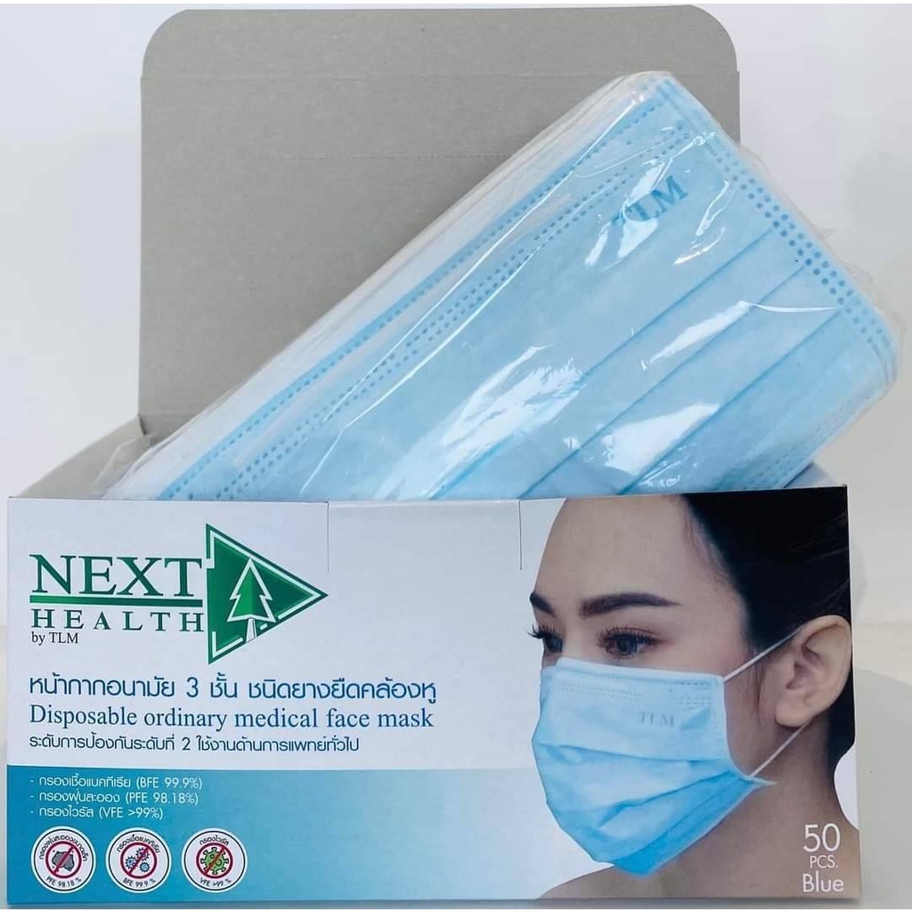 แมส 3 ชั้น ( หน้ากาก อนามัย เกรด ทางการแพทย์ ) งาน ไทย บริษัททรูไลน์เมด klean ผู้ใหญ่ TLM NEXT HEALTH กล่องละ 50 ชิ้น
