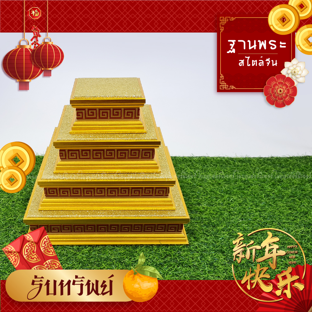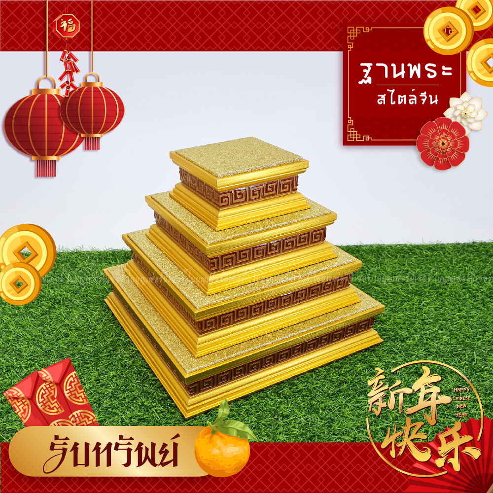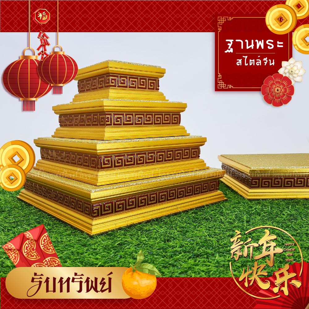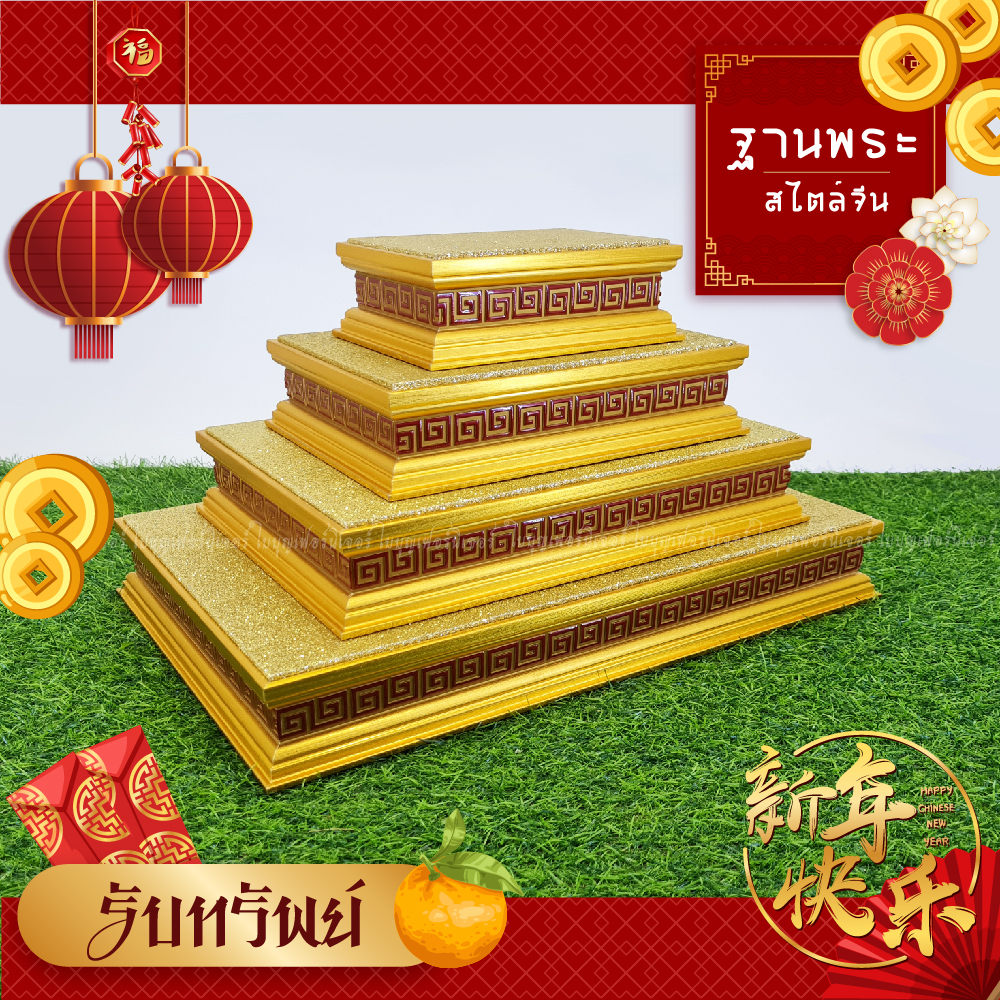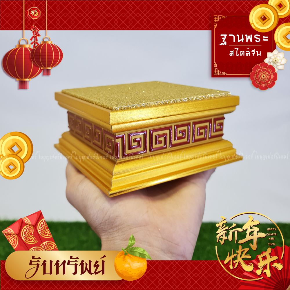 ฐานวางพระ ลายจีน ใบบุญเฟอร์นิเจอร์ แท่นพระจีน สีทอง สูง 2 นิ้ว [ B037-2 ]